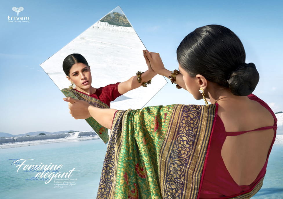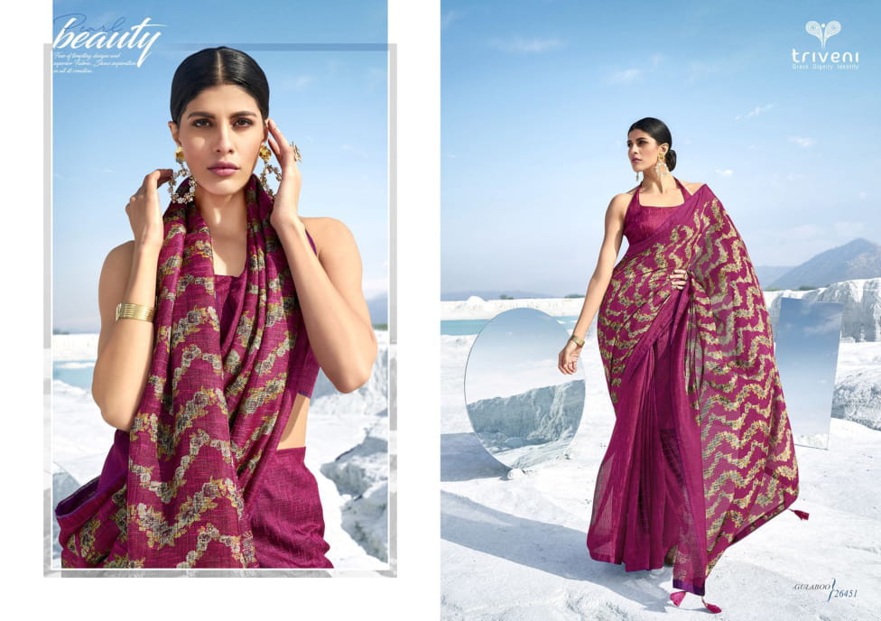 Other Details: | Brand – Triveni . Catlog name – GULABOO-2. Rate -591 per pcs . Fabric- Jute silk . Set to set . GST 5 Percent Extra. Delivery from today |