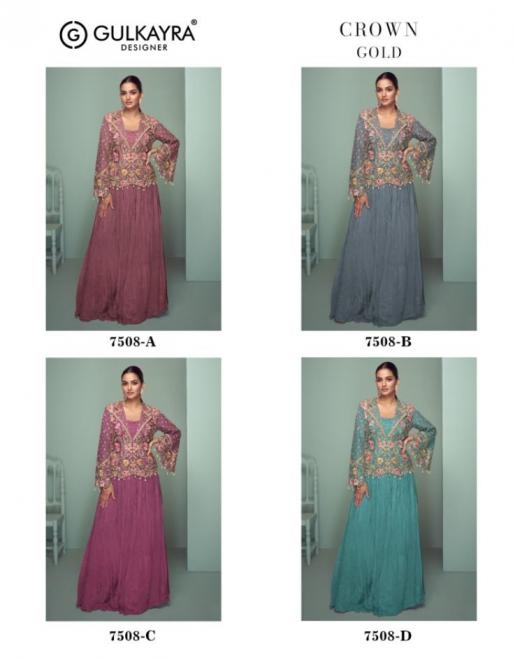 | Name: | Gulkayra Crown Gold Series 7508 Exclusive Readymade Chinon Top Skirt With Dupatta |
