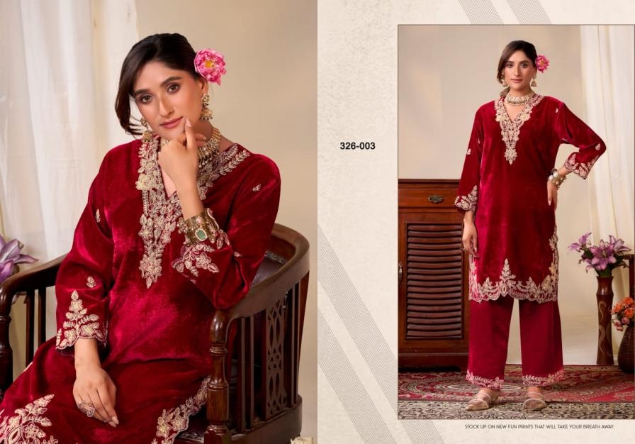 | Name: | Gulrez Tahira Series 326001 To 326004 Premium Velvet Kashmiri Design Stitched Coord Set In Wholesale Surat |
