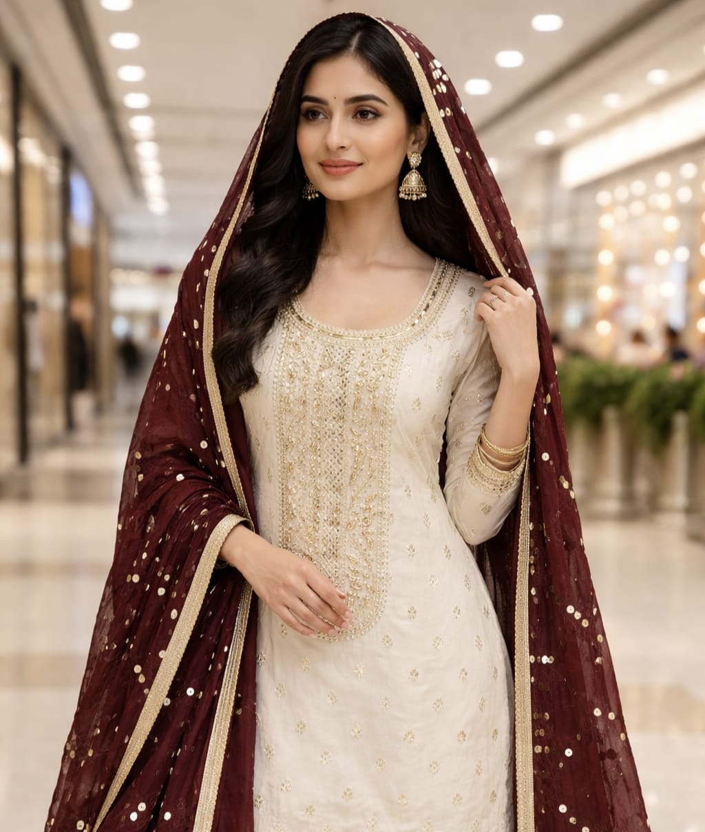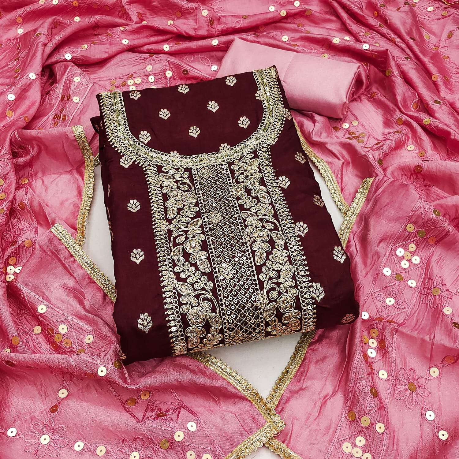 BOTTOM Fabrics:- Dupatta: CHANDERI MULTI SQUANCE WORK ▪ Size: MATERIALS