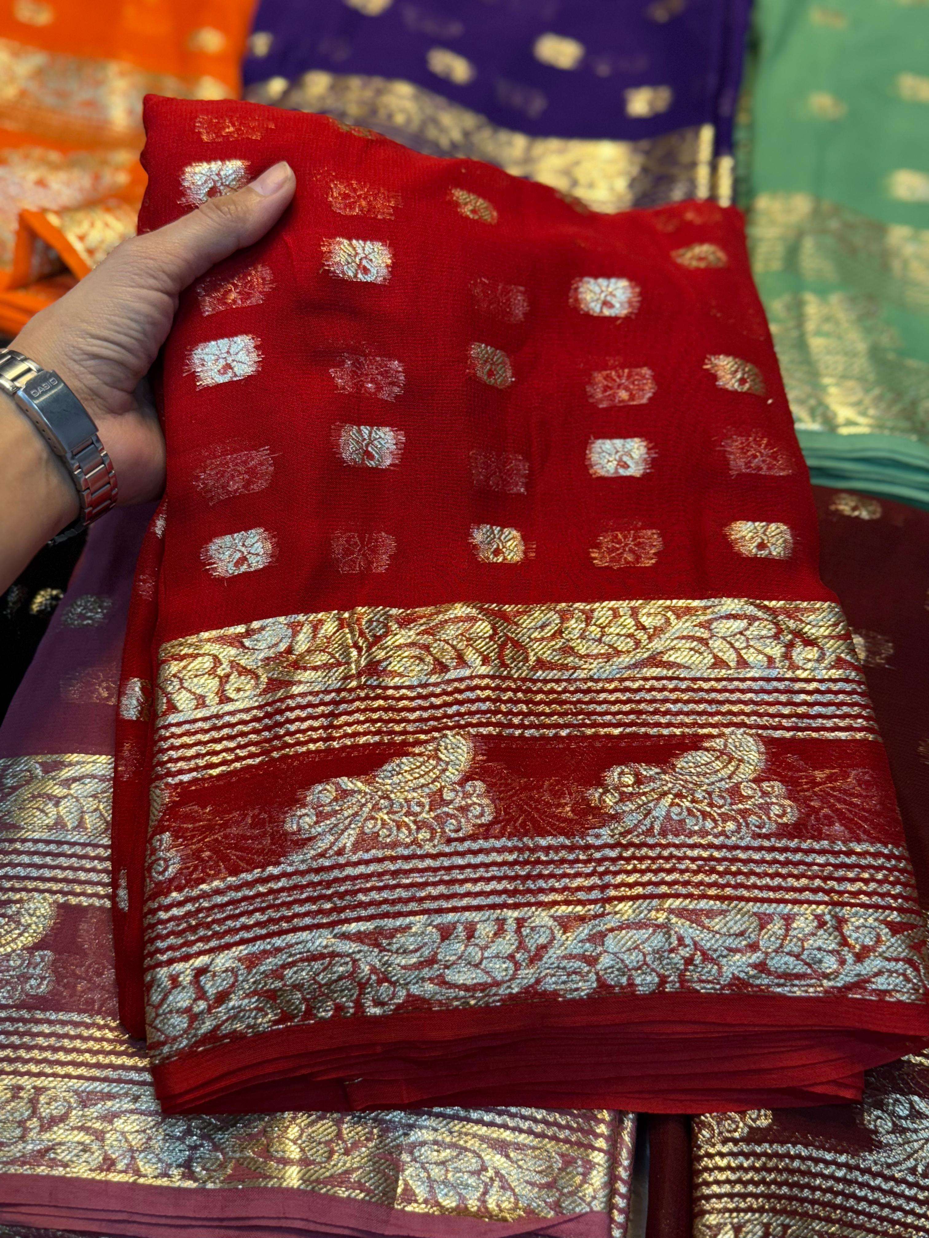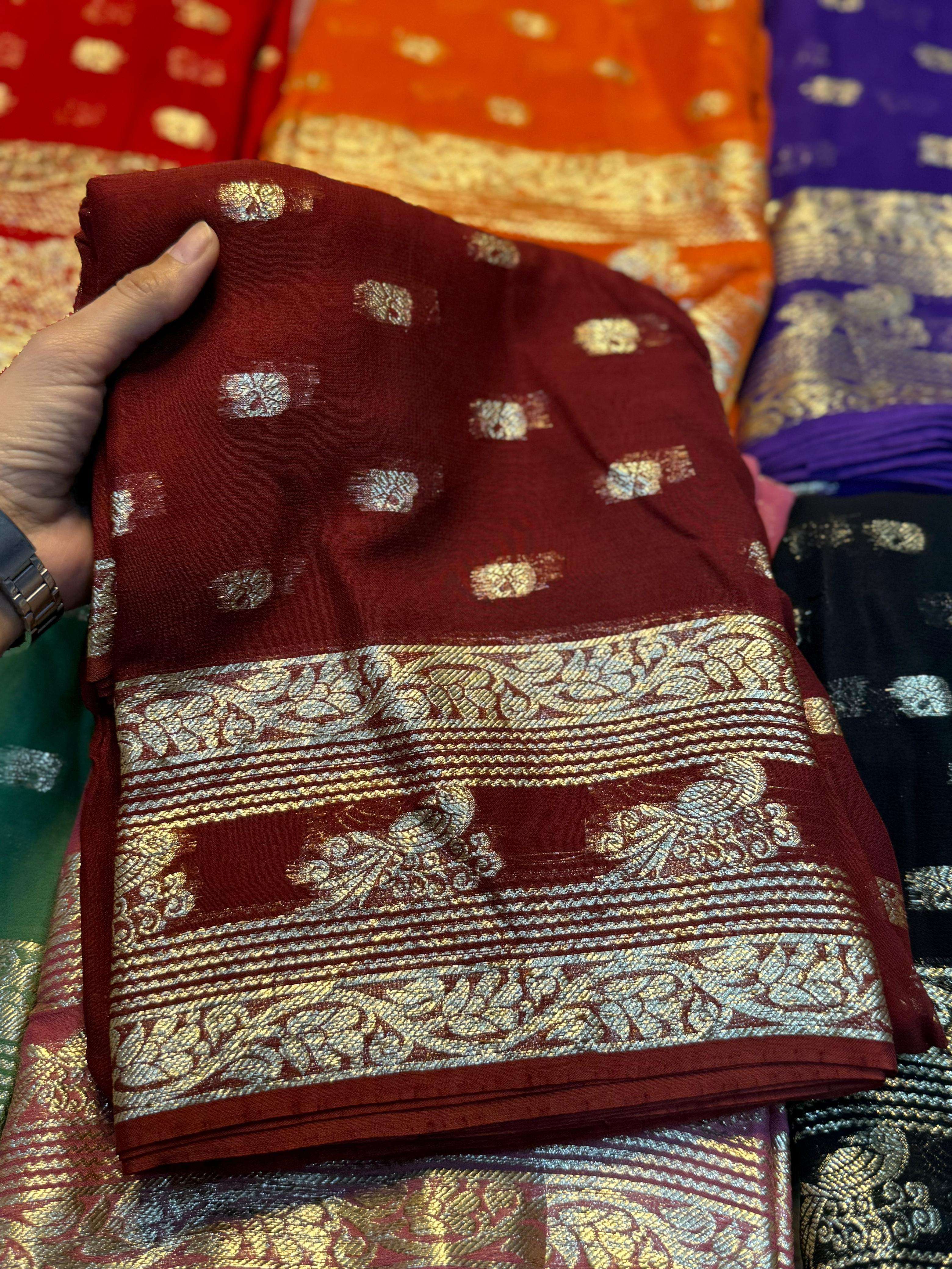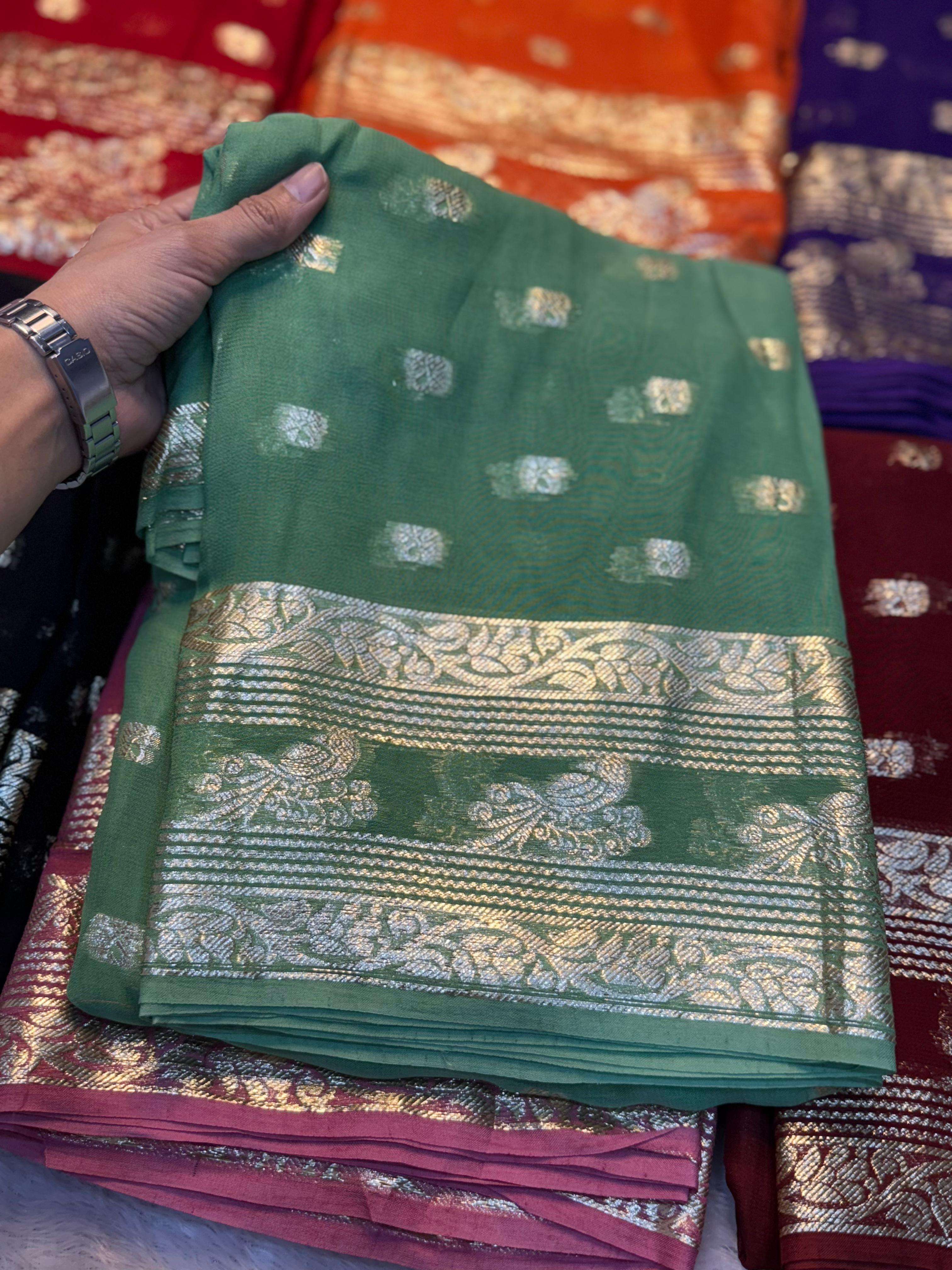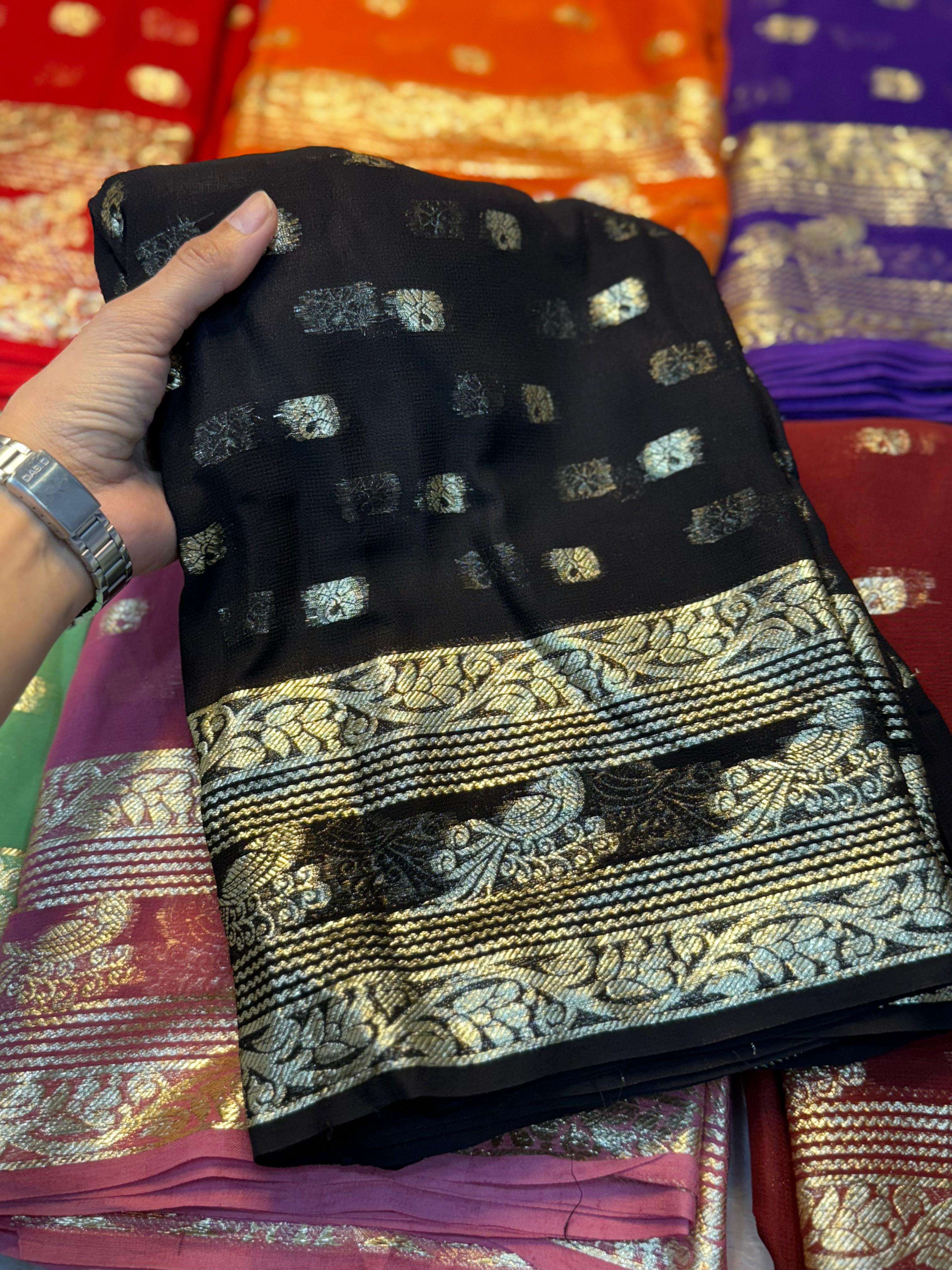 | Other Details: | New Cataloge Launch 🚀 ▶️ Fabric - Pure Viscose Georgette Saree With Fancy Zari & Fancy Jacquard Border With Fancy Viscose Georgette Silk Jecquard Blouse 👚 ▶️ Price:- 799/- 👉Full Ready Stock 😍We Believe In Quality 😍 |