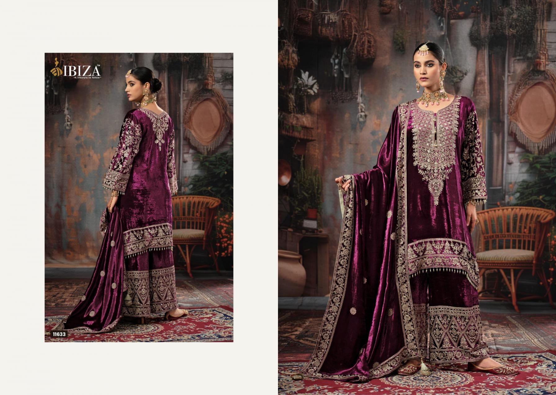 Other Details: | 🙏🙏 IBIZA 🙏🙏 NEW SERIES MEHR PREMIUM VELVET 👊Fabric Details👊 👗Top:-PURE VISCOSE VELVET FARONT & BACK CHAIN STITCH WORK & HANDWORK WITH LATKN LACE BOTTOM:-PURE VELVET CHAIN STITCH WORK AND HANDWORK 🔻Designs:- 4 PCS Rate:- 2760/- +GST