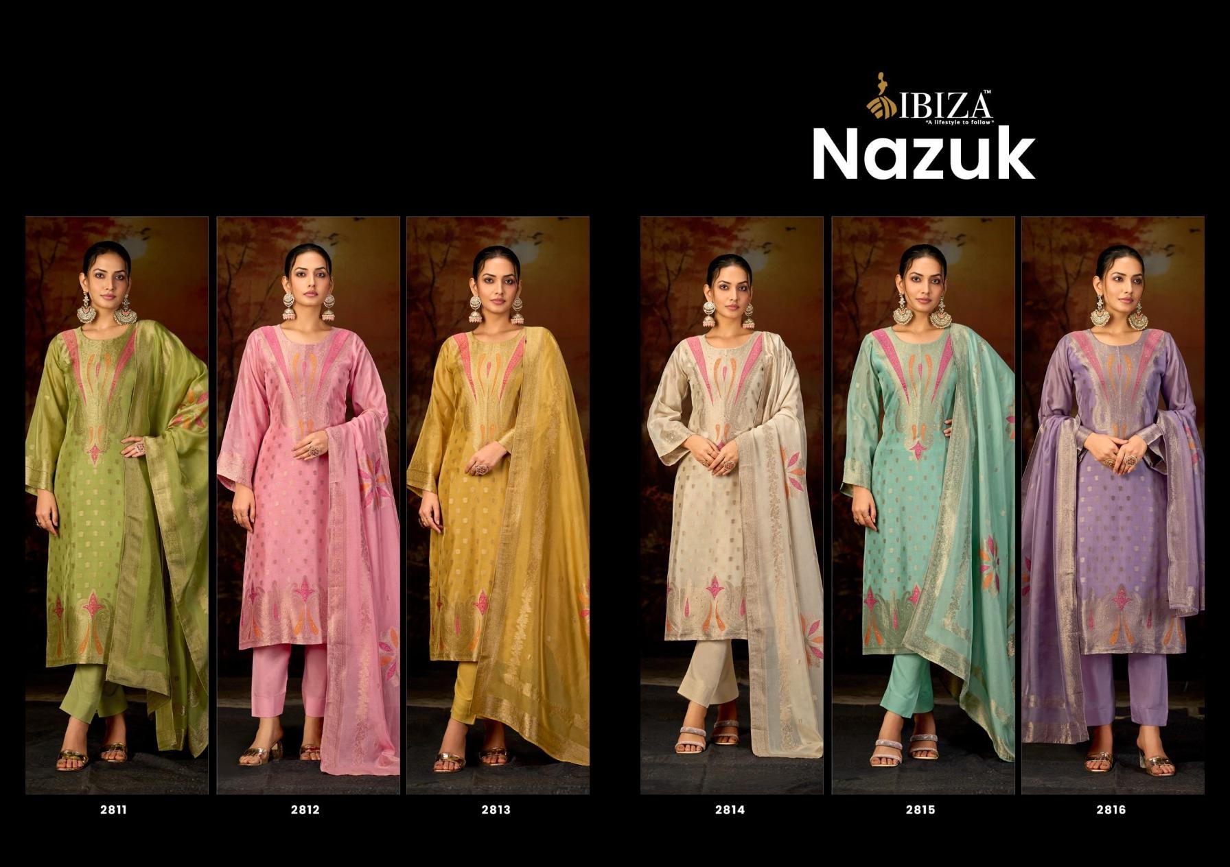 | Name: | Ibiza Nazuk Series 2811-2816 Banglory Silk Jacquard Wholesale Suit |