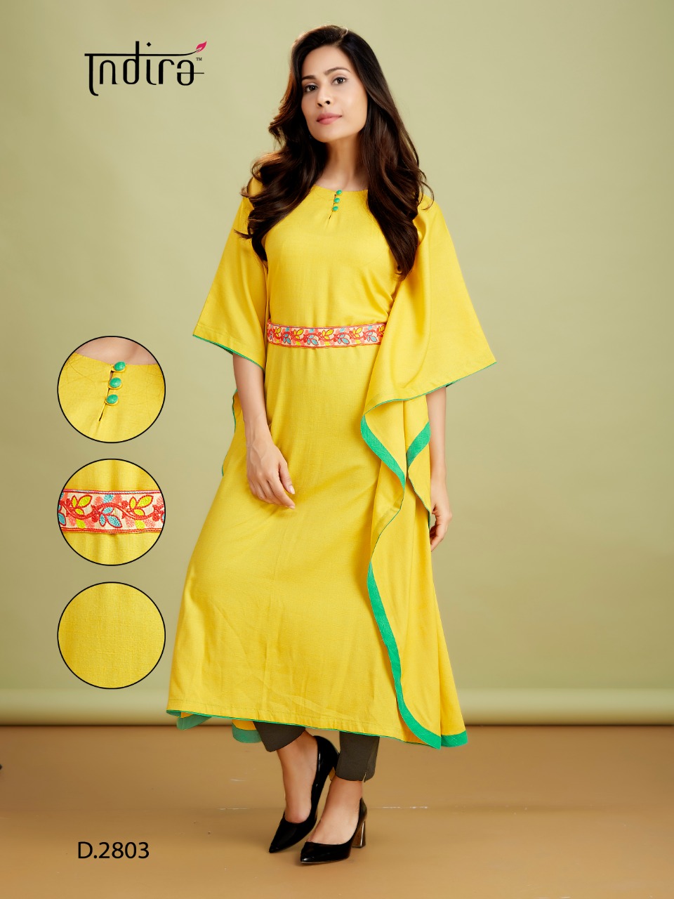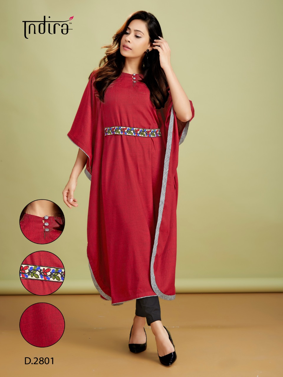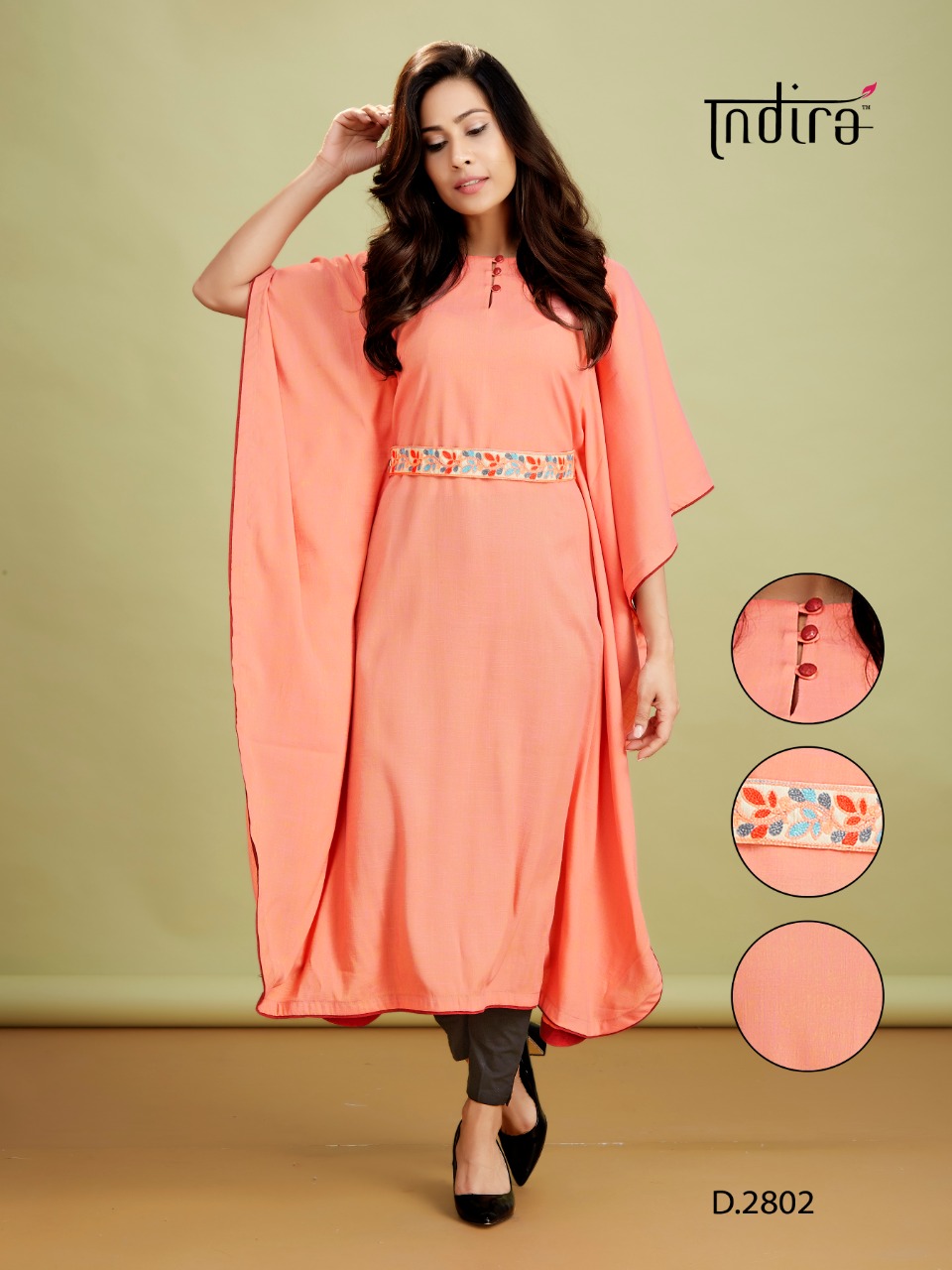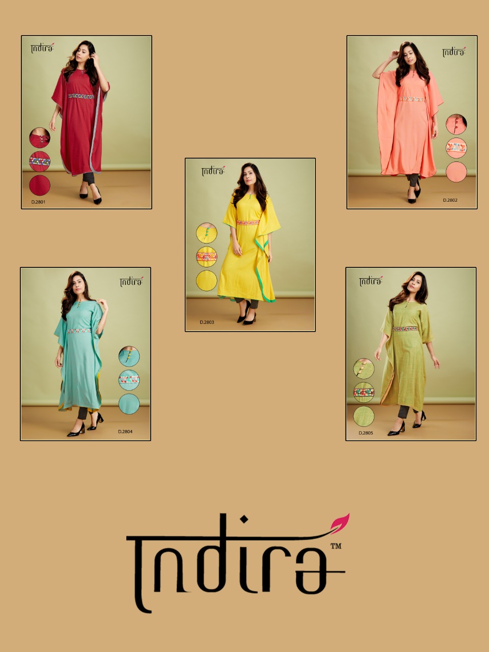 | Other Details: | Indira Apparel’s New Catalog Catalog Name – Kaftan [One Piece Collection] Designs – 5 Fabric Top – Two Tone Rayon Fluid Fabric Belt – Embroidered [Removable] Top Length – 45″ Sizes – L|40″ XL|42″ Price – 499/- INR 5% GST Regards Indira Apparel Dispatch – 20-01-2020 Note: -All Designs with Extra Margin. Easily Alterable to One Size Plus -Original Garment Images Available on Demand |