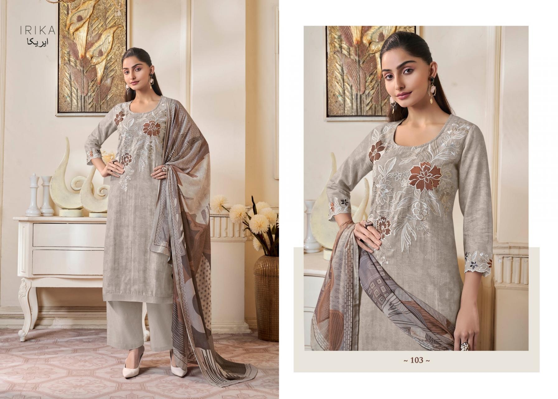 | Other Details: | *IRIKA* SHIRT : DIGITAL PRINTED PURE LINEN DUPATTA: DIGITAL PRINTED MUSLINE. PLAZO: DYED COTTON *RATE:* |
