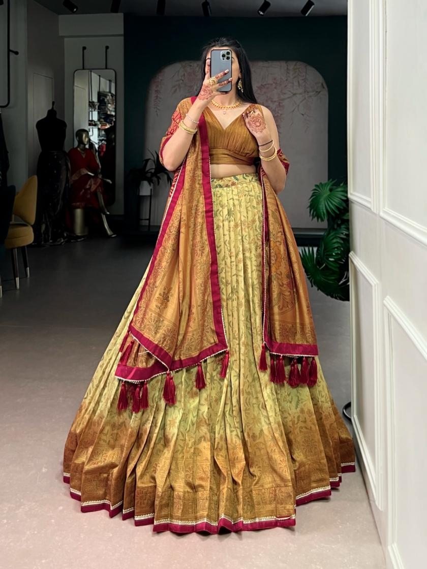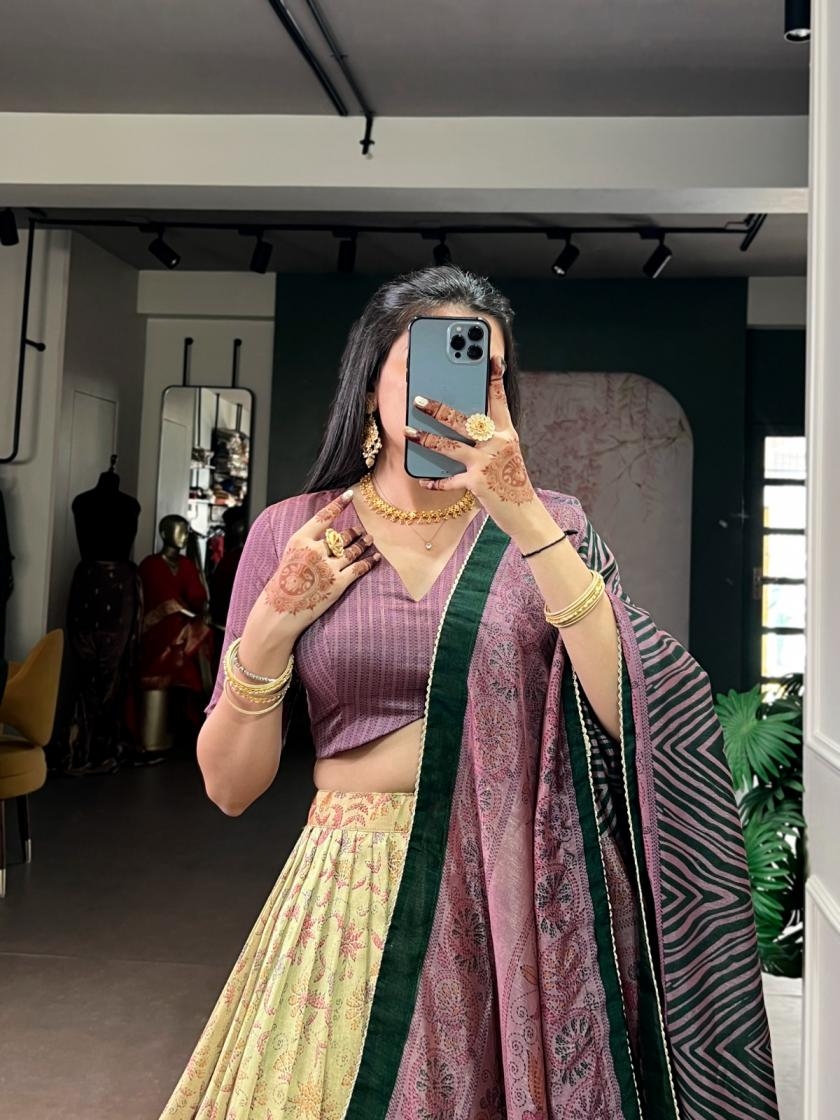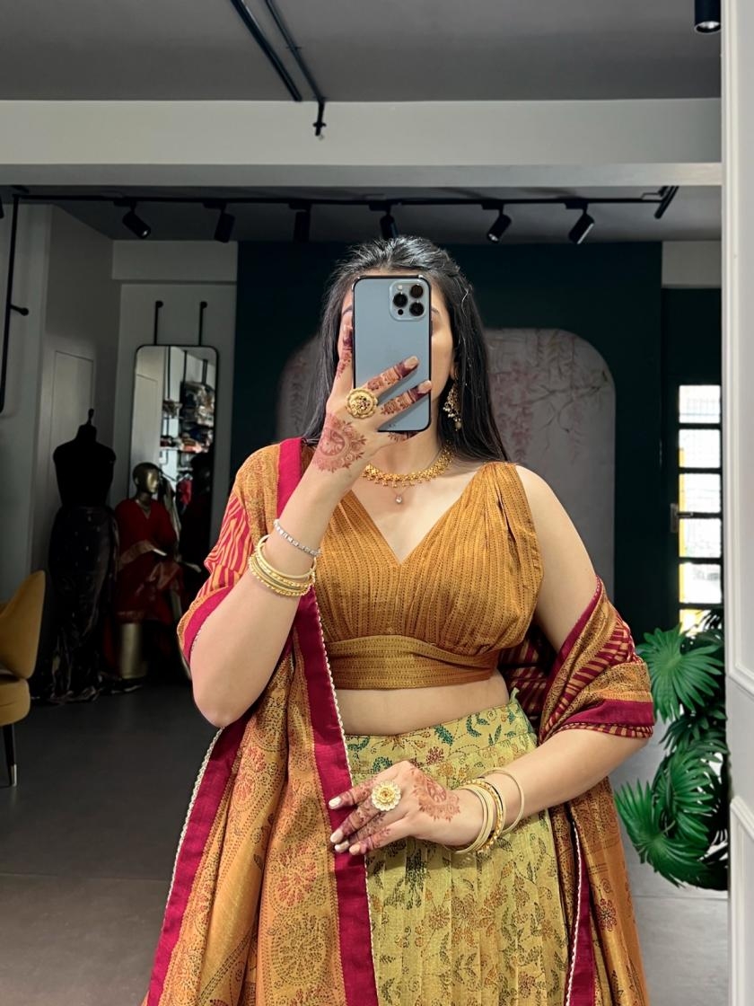 This Vichitra silk lehenga with delicate prints brings heritage vibes with a modern festive touch 🪞