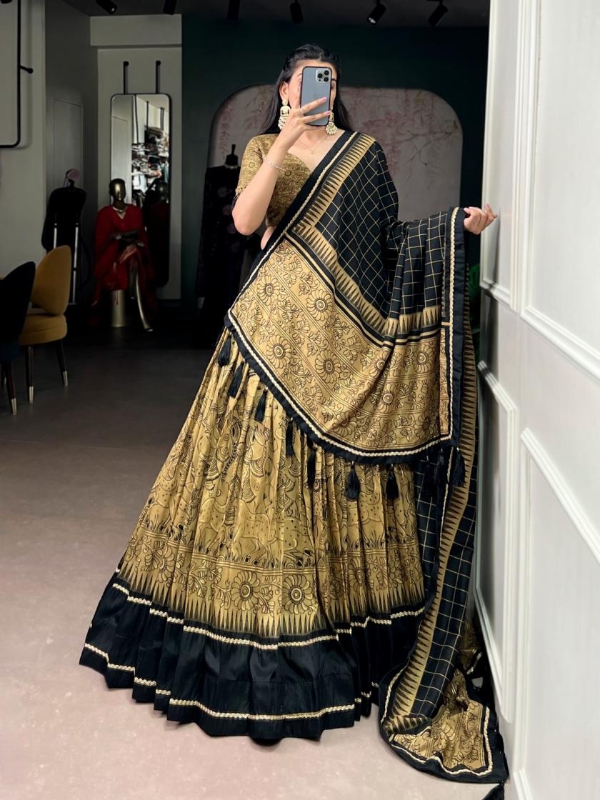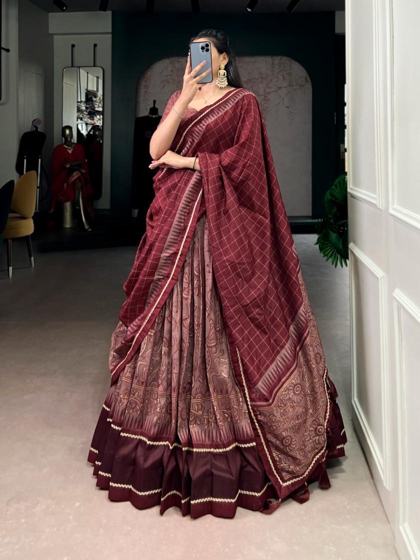 Lehenga Work : Kalamkari Print With Lace Border