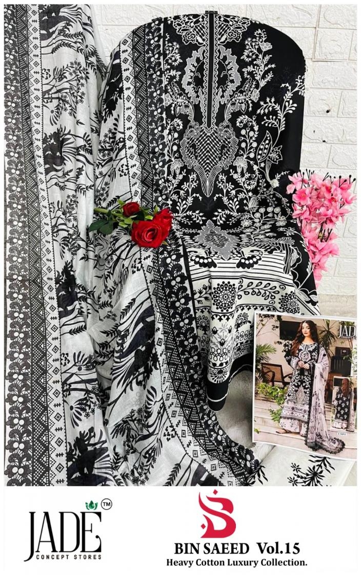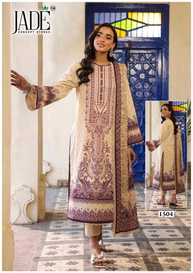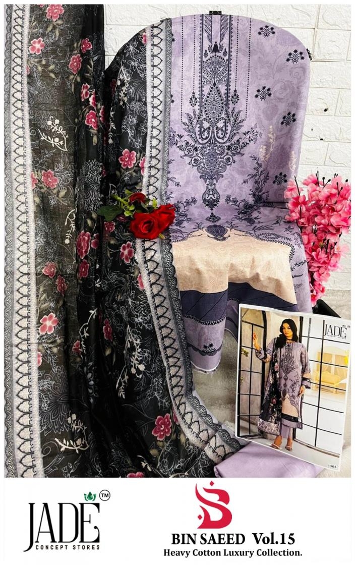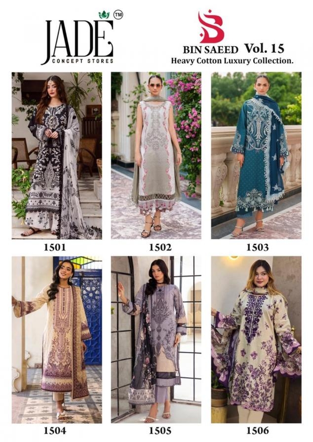 | Name: | Jade Bin Saeed Vol 15 Series 1501 To 1506 Hit Design Full Stitch Lawn Cotton Pakistani Suit In Wholesale Surat |