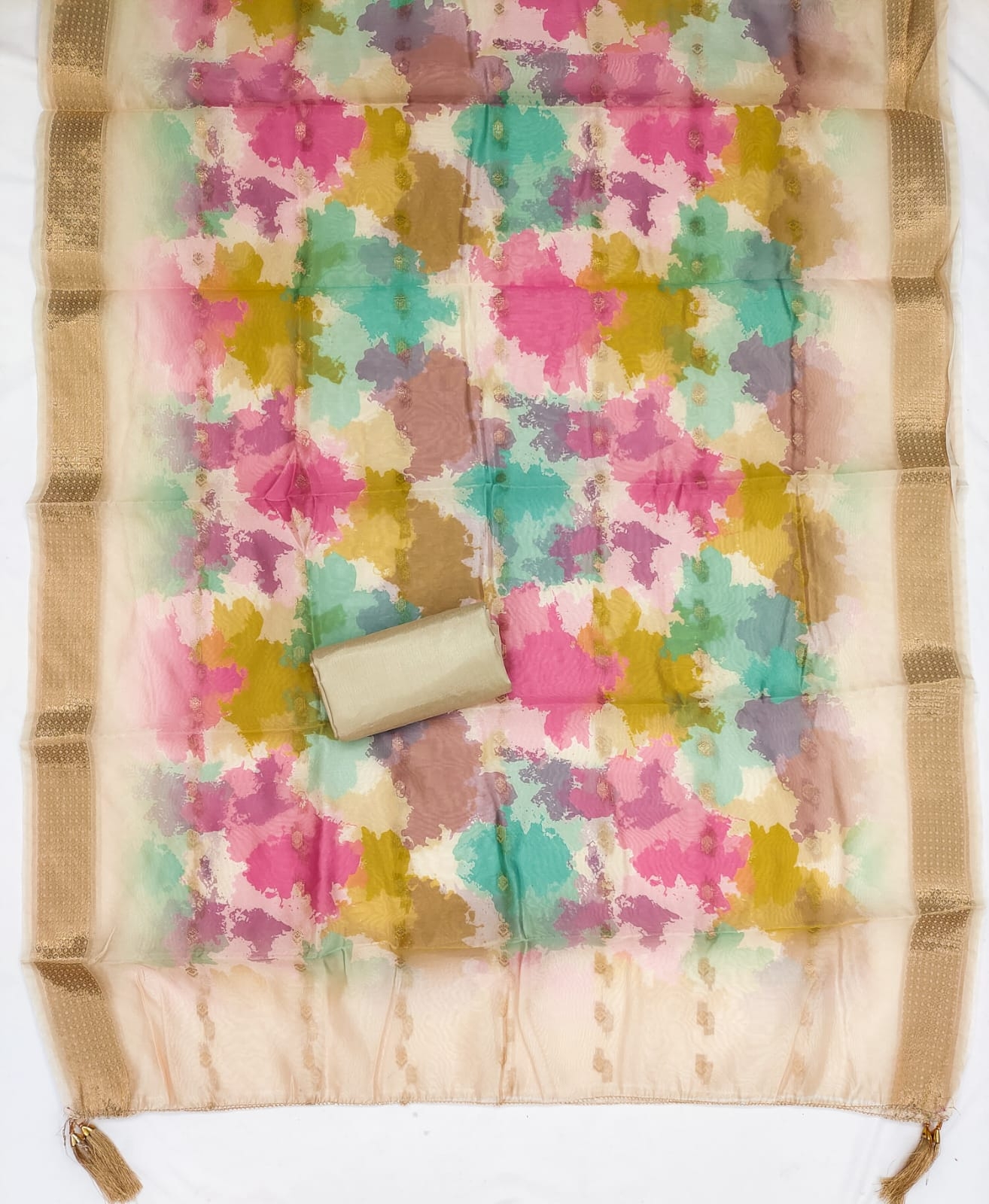 BOTTOM + INNER Fabrics:- Dupatta: ORGANZA SILK ZAKARD DIGITAL PRINT ▪ Size: MATERIALS