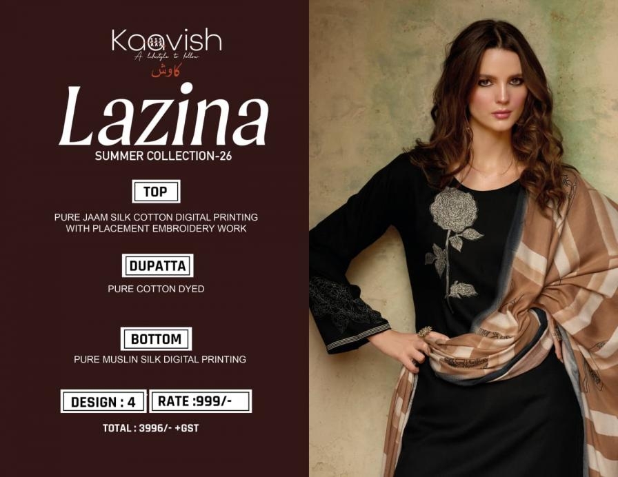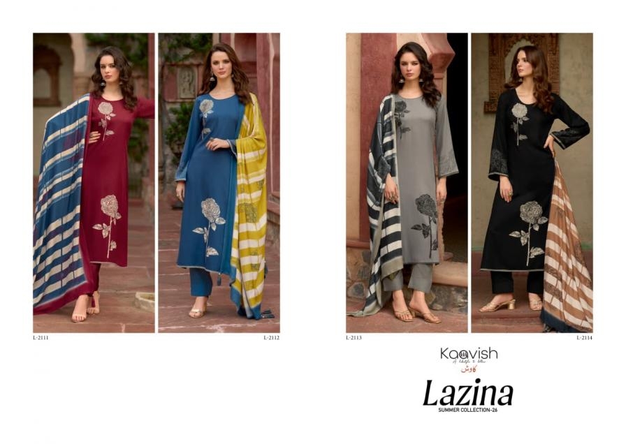 | Name: | Kaavish Lazina Summer Collection Vol 26 Series 2111-2114 Jam Silk Wholesale Suit | |