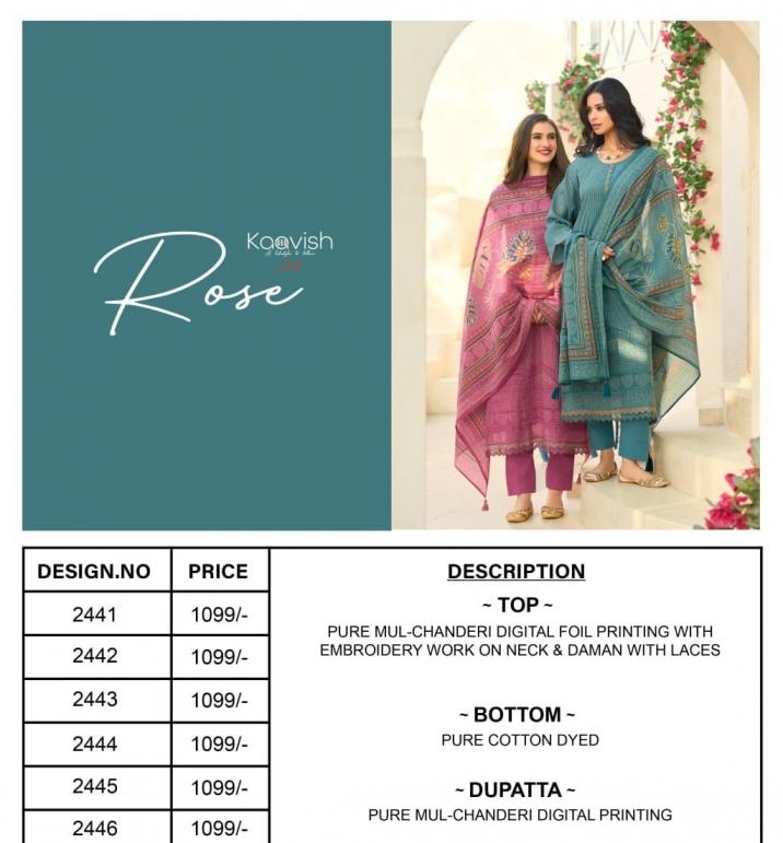 | Name: | Kaavish Rose Series 2441 To 2446 Mul Chanderi Fancy Salwar Kameez In Wholesale Surat |