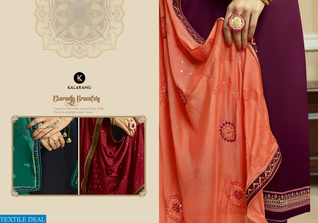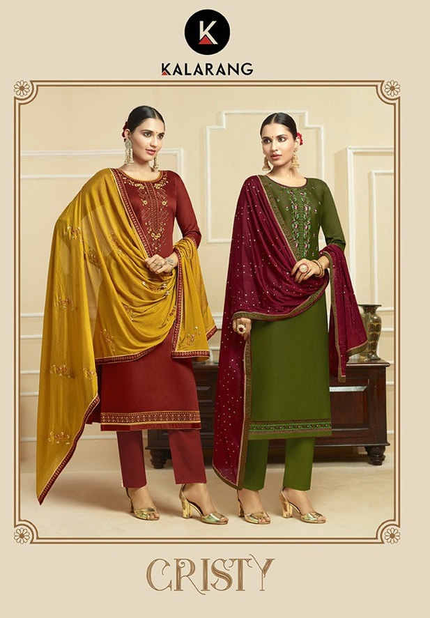 | Other Details: | ? Kalarang. has launched Catalog name: CRISTY ? Fabric Details ? â–ªTop:- JAM SILK COTTON WITH EMBROIDERY WORK â–ªBottom:- COTTON â–ªDupatta:- CHINON WITH 5 MM SEQUENCE WORK FOUR SIDE BORDER WORK â–ªTotal Design:- 4 â°Dispatching 5 to 6 days later ?Booking started from now… Rate …799 |