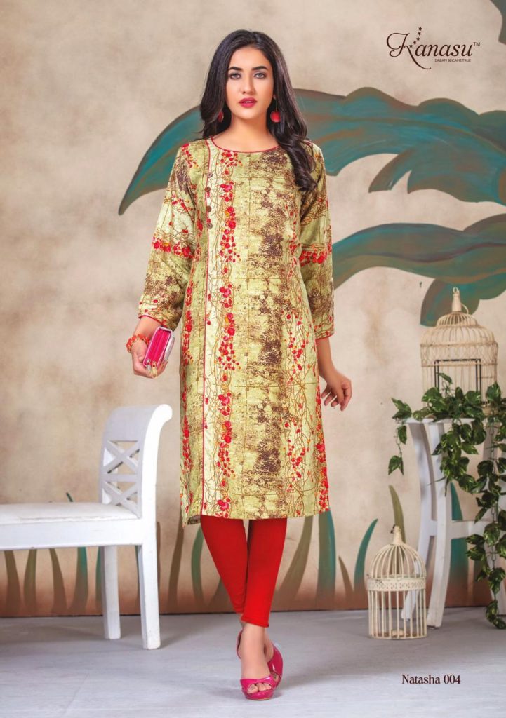 | Other Details: | Greeting from KANASU KURTI We are introducing KANASU ‘S new catalog _?Catalogue:- NATASHA ?cloth :- REYON PRINT(14KG) ✅Concept :- * STRAIGHT WITH PRINT CONCEPT* Length :- 42†Size:- M L XL 2XL 3XL AVAILABLE Rate : – 380 10 DESIGNS CATALOGUE |