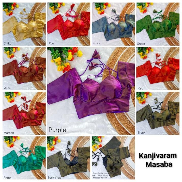 Other Details: | ➡️ EXCLUSIVE PARTYWEAR MASABA PATTERN KANJIVARAM WEAVING JARI FANCY BLOUSE ➡️Design- KANJIVARAM MASABA ➡️Fabric- Pure Kanjivaram Silk Jari ➡️Inner- Cotton (Double Lining) ➡️Work- Exclusive Kanjivaram Weaving Jari ➡️Pattern- MASABA PAN NEACK ➡️Quality- A1 ➡️Padded- Yes ➡️Size- Free Size 38 Ready ➡️Length- 14-15 Inch ➡️Open Type- Back Hook ➡️Sleev- Elbow Sleeves Atteched ➡️Colour:- (10 Colours Available) 🖤💛🧡❤️🩷️💙💜🤍🤎 ➡️Price- 420/*- +GST ➡️SHIPPING EXTRA ➡️ BOOK FAST READY STOCK |