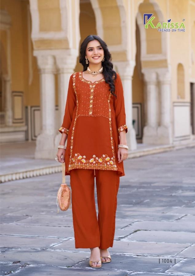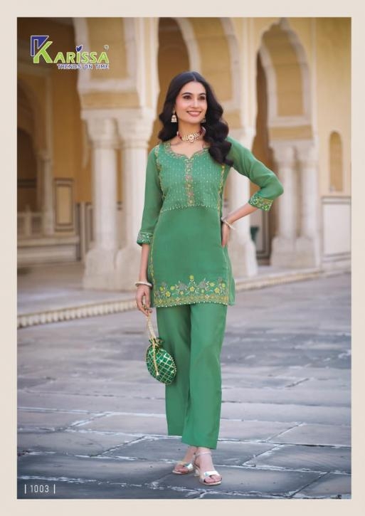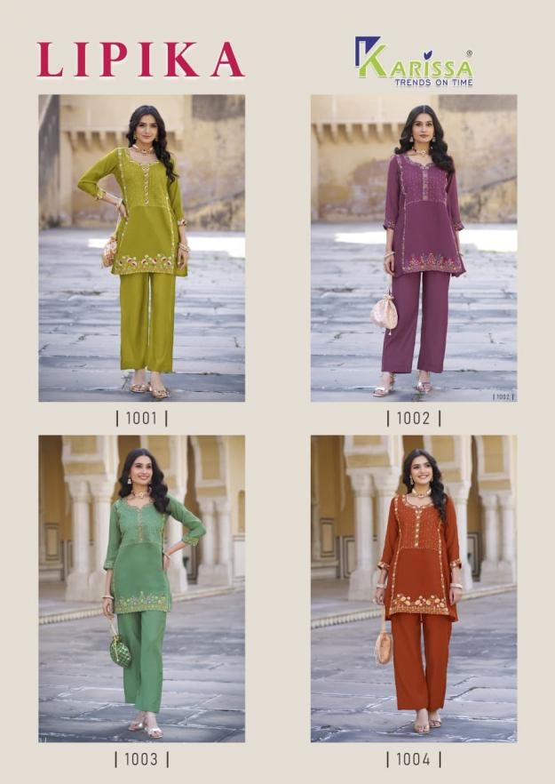 | Name: | Karissa Lipika Series 1001-1004 Viscose Mul Chanderi Kurti With Bottom | |