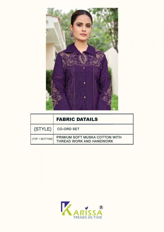 | Other Details: | MARIA TOP + PANT. CO-ORD SET Brand : KARISSA Size : S(36),M(38),L(40), XL(42), XXL(44),3XL(46) Rate : Rs. 755/- per pcs +5%GST SET TO SET Dispatch : 2 - 3 days dispatch CLASSY AND FABULOUS BOUTIQUE COLLECTION Book Your Order Now |