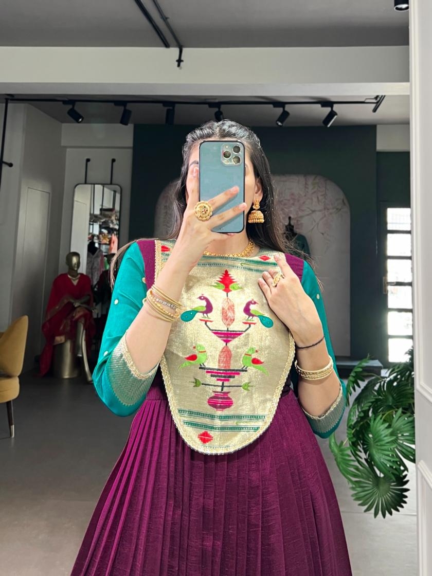 An elegant blend of comfort and tradition, designed in luxurious Vichitra Silk with a beautifully flowing flair.