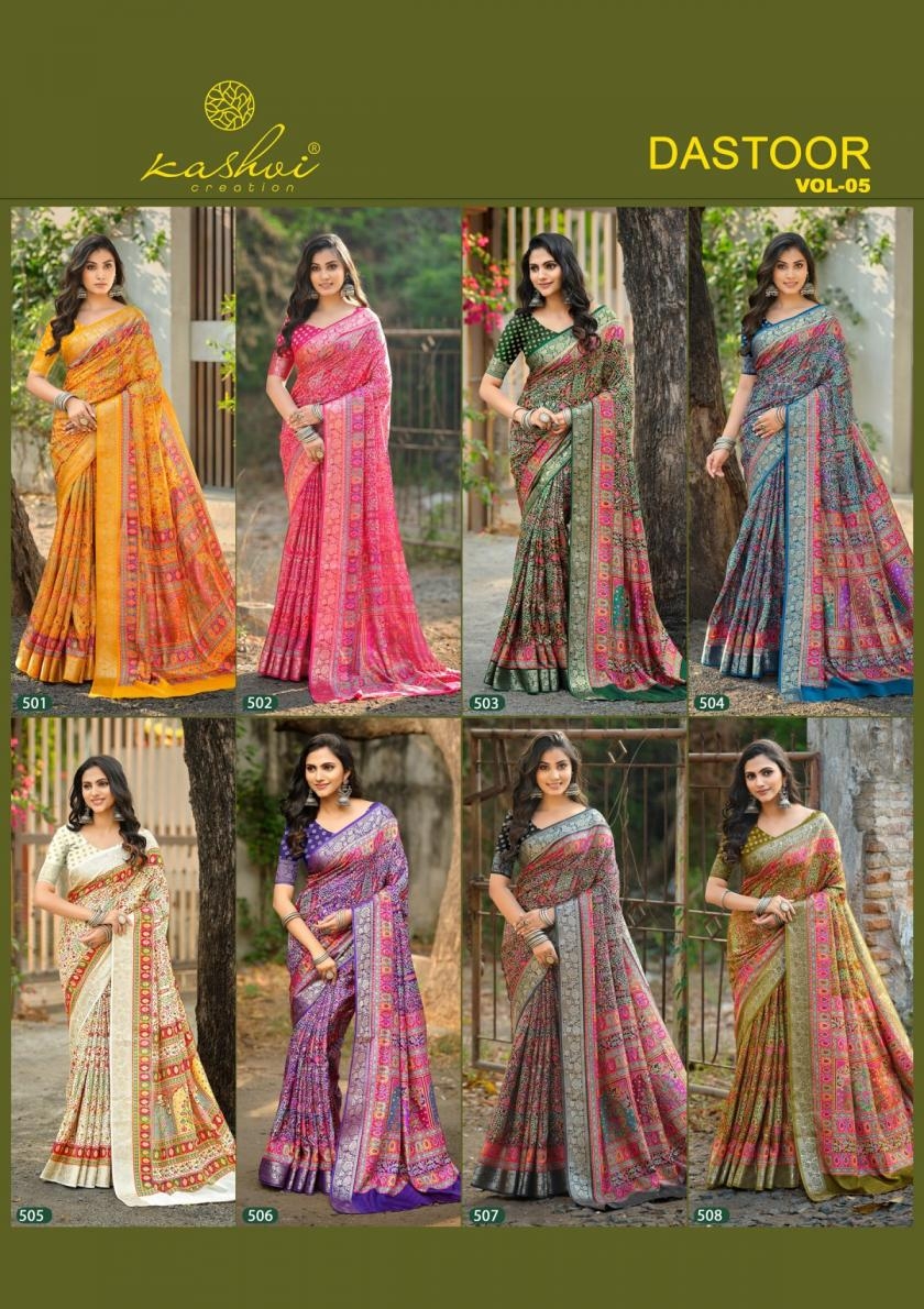 | Name: | Kashvi Creation Dastoor Vol 5 Series 501-508 Viscose Wholesale Saree |