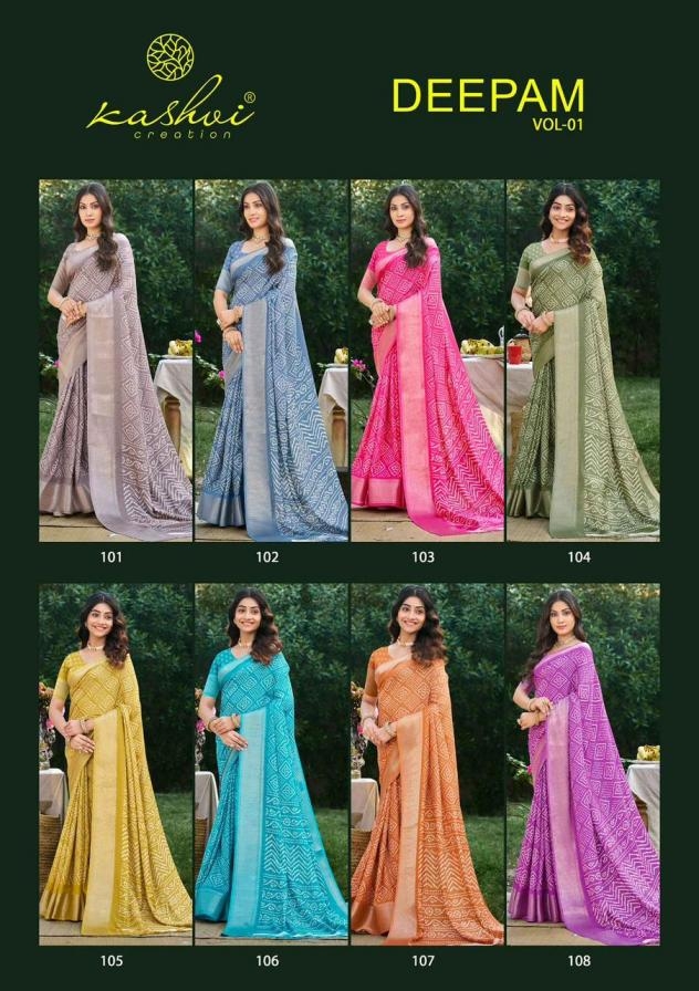 | Name: | Kashvi Creation Deepam Vol 1 Series 101 To 108 Dola Silk Gorgeous Look Saree In Wholesale Surat |