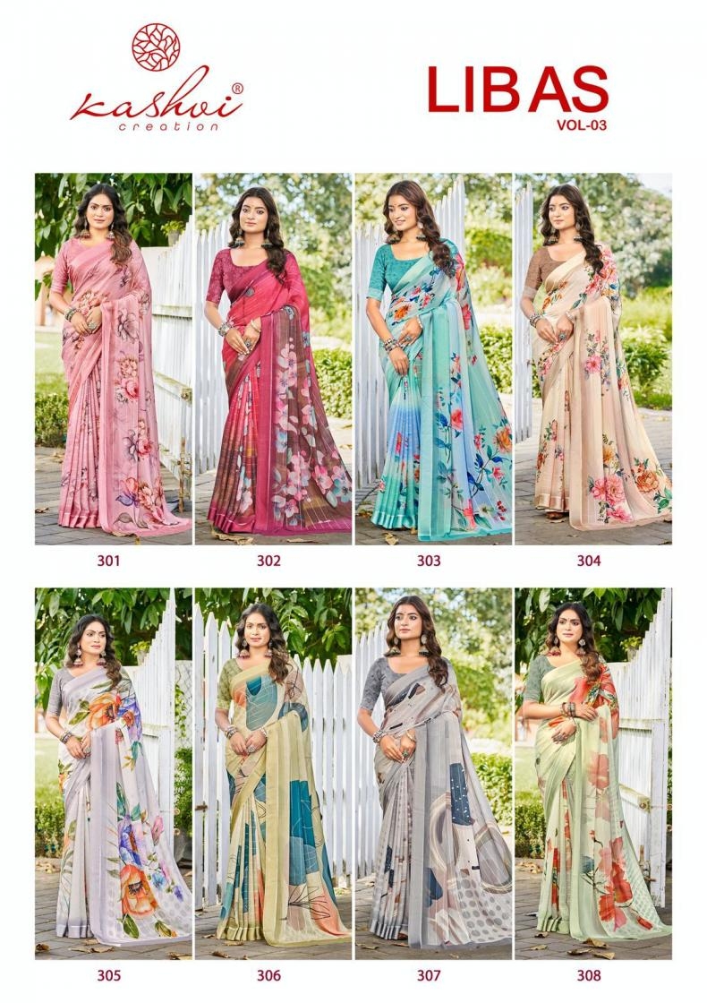 | Name: | Kashvi Creation Libas Vol 3 Series 301 To 308 Hit Design Dull Moss Sarees In Wholesale Surat | |