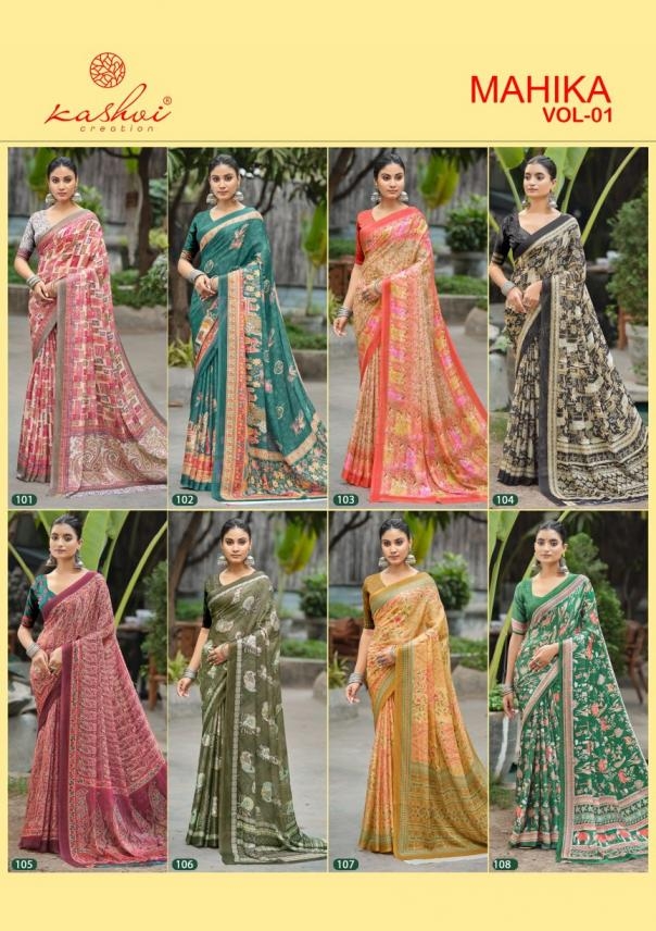 | Name: | Kashvi Creation Mahika Vol 1 Series 101-108 Chiffon Printed Pretty Saree |