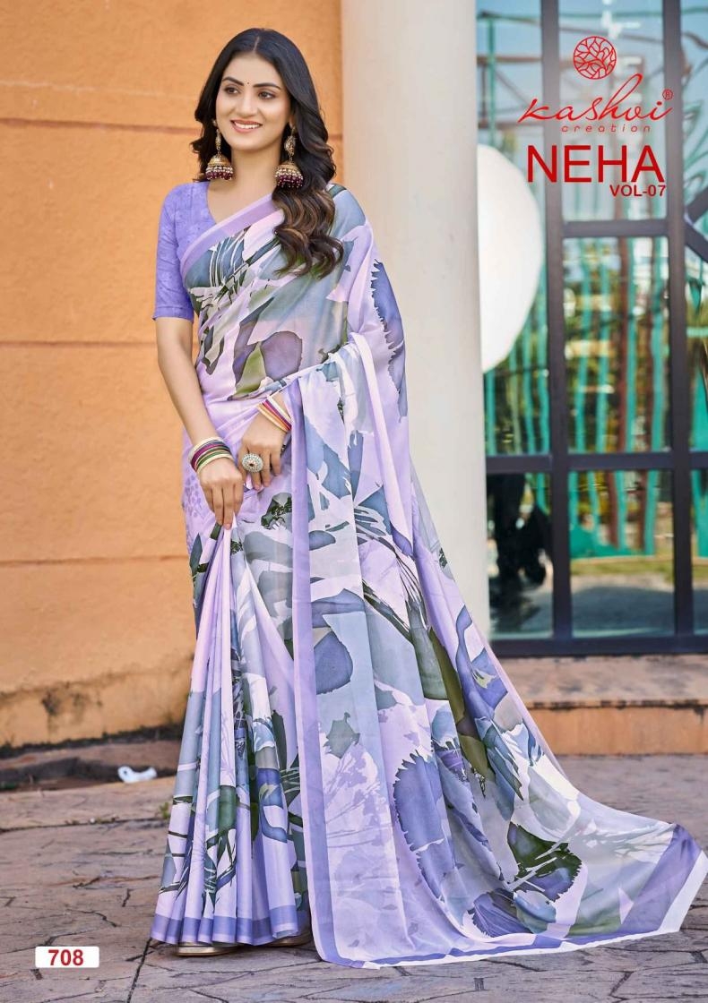 | Name: | Kashvi Creation Neha Vol 7 Series 701 To 708 Pretty Look Dull Moss Saree In Wholesale Surat |