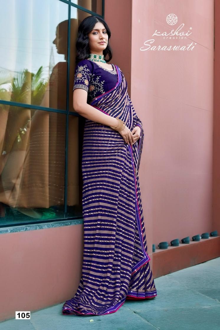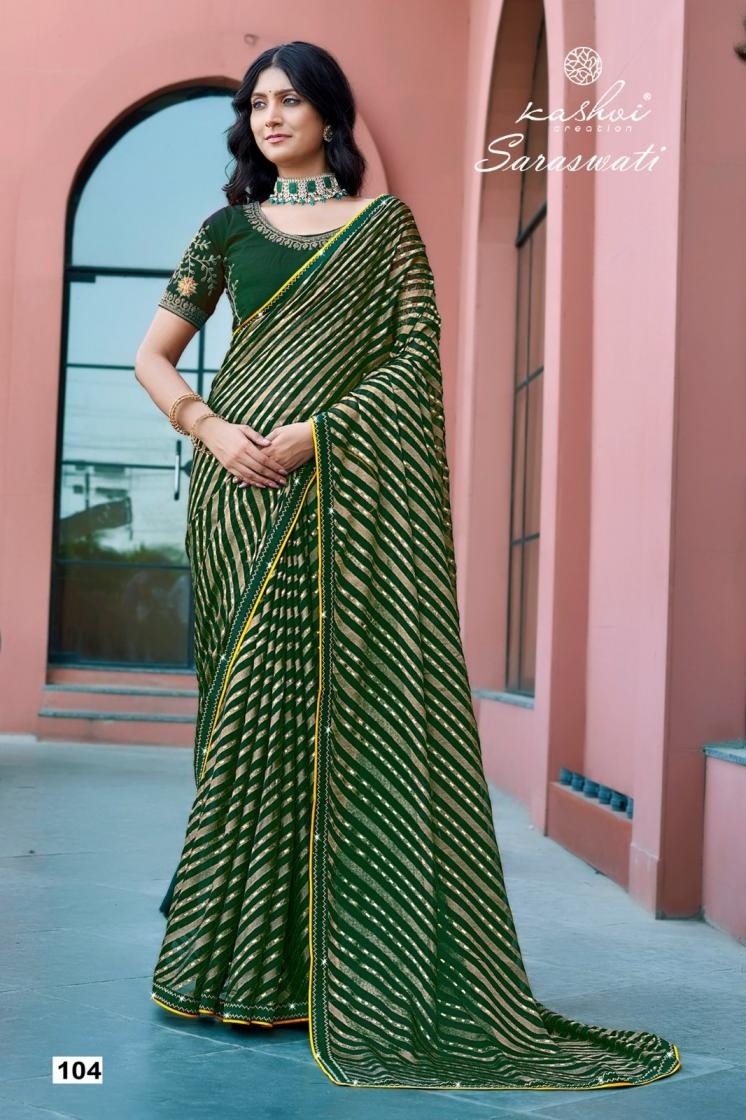 | Name: | Kashvi Creation Saraswati Series 101-108 Dull Moss Brasso Wholesale Saree |