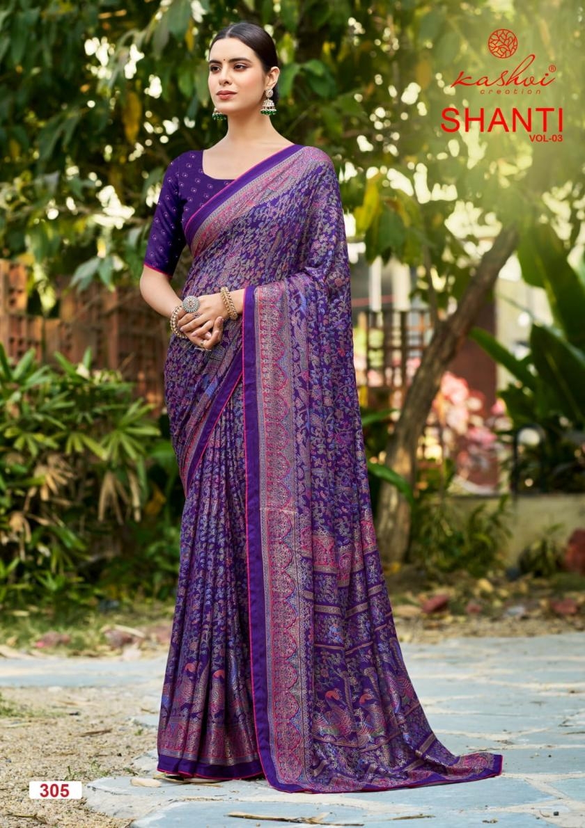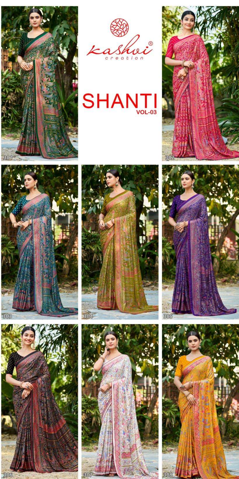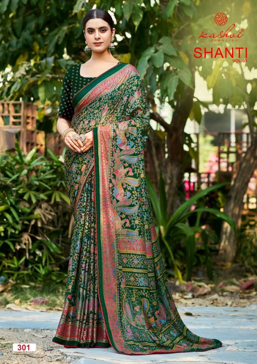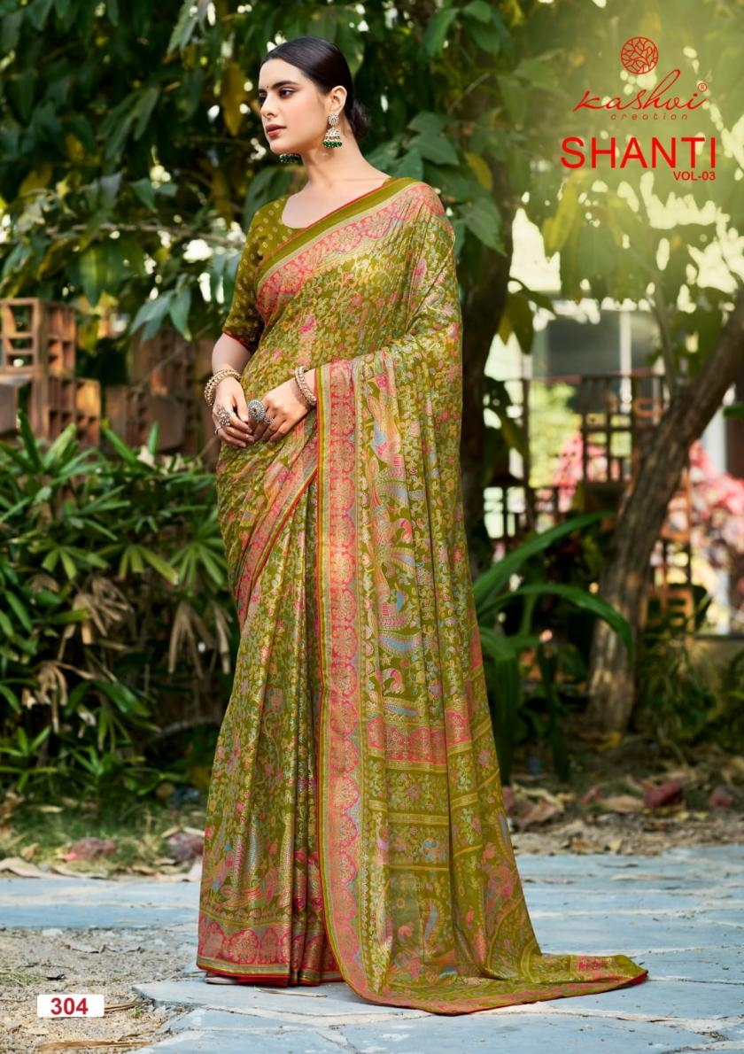 | Name: | Kashvi Creation Shanti Vol 3 Series 301 To 308 Elegant Style Bright Moss Foil Saree In Wholesale Surat |