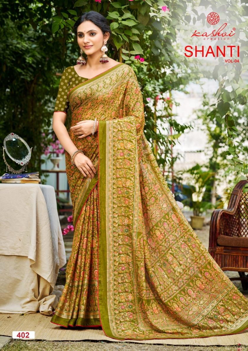 | Name: | Kashvi Creation Shanti Vol 4 Series 401 To 408 Fancy Bright Moss Best Saree In Wholesale Surat | ||||||||||||||||||