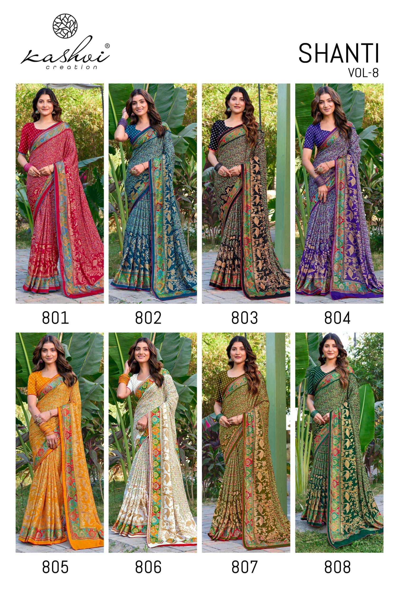 | Name: | Kashvi Creation Shanti Vol 8 Series 801-808 Bright Moss Foil Wholesale Saree In Surat |