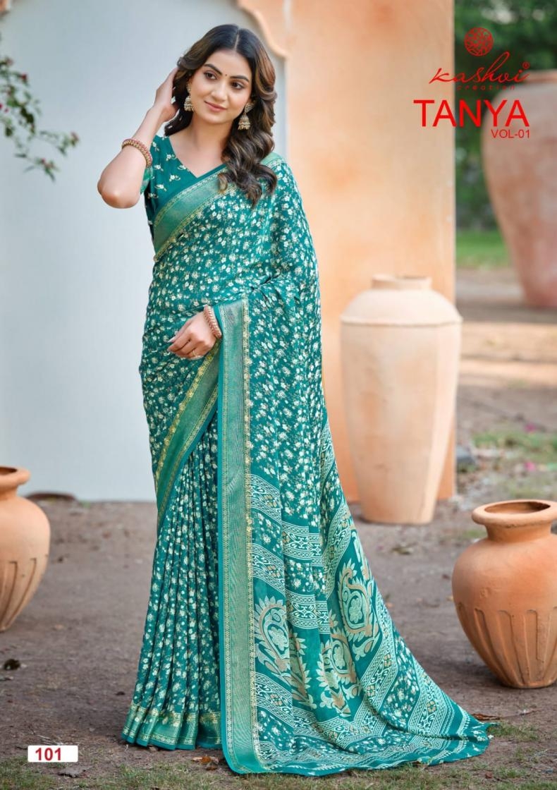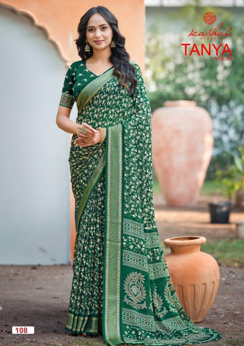 | Name: | Kashvi Creation Tanya Vol 1 Series 101-108 Dull Moss Viscose Wholesale Saree |