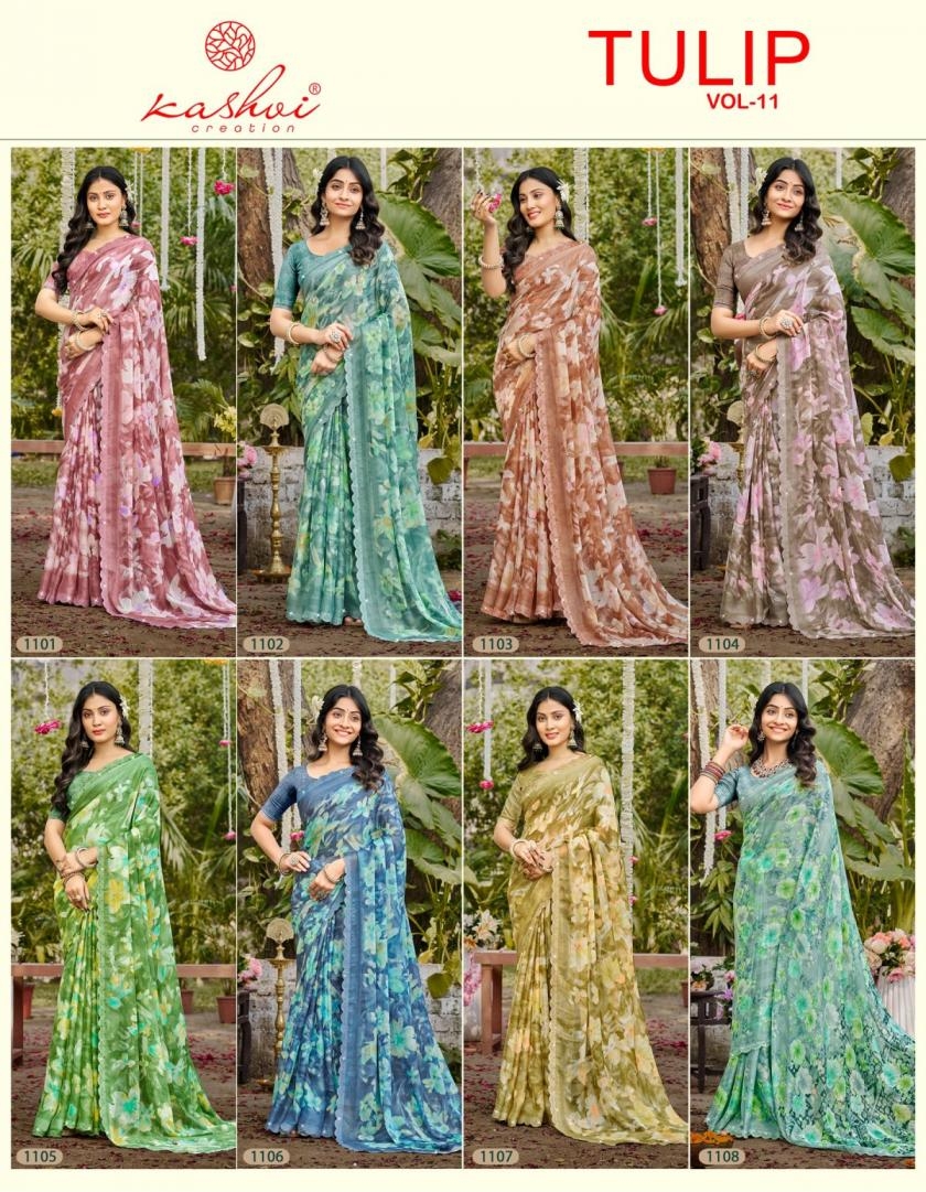 | Name: | Kashvi Creation Tulip Vol 11 Series 1001-1008 Rimzim Swarovski Work Saree |