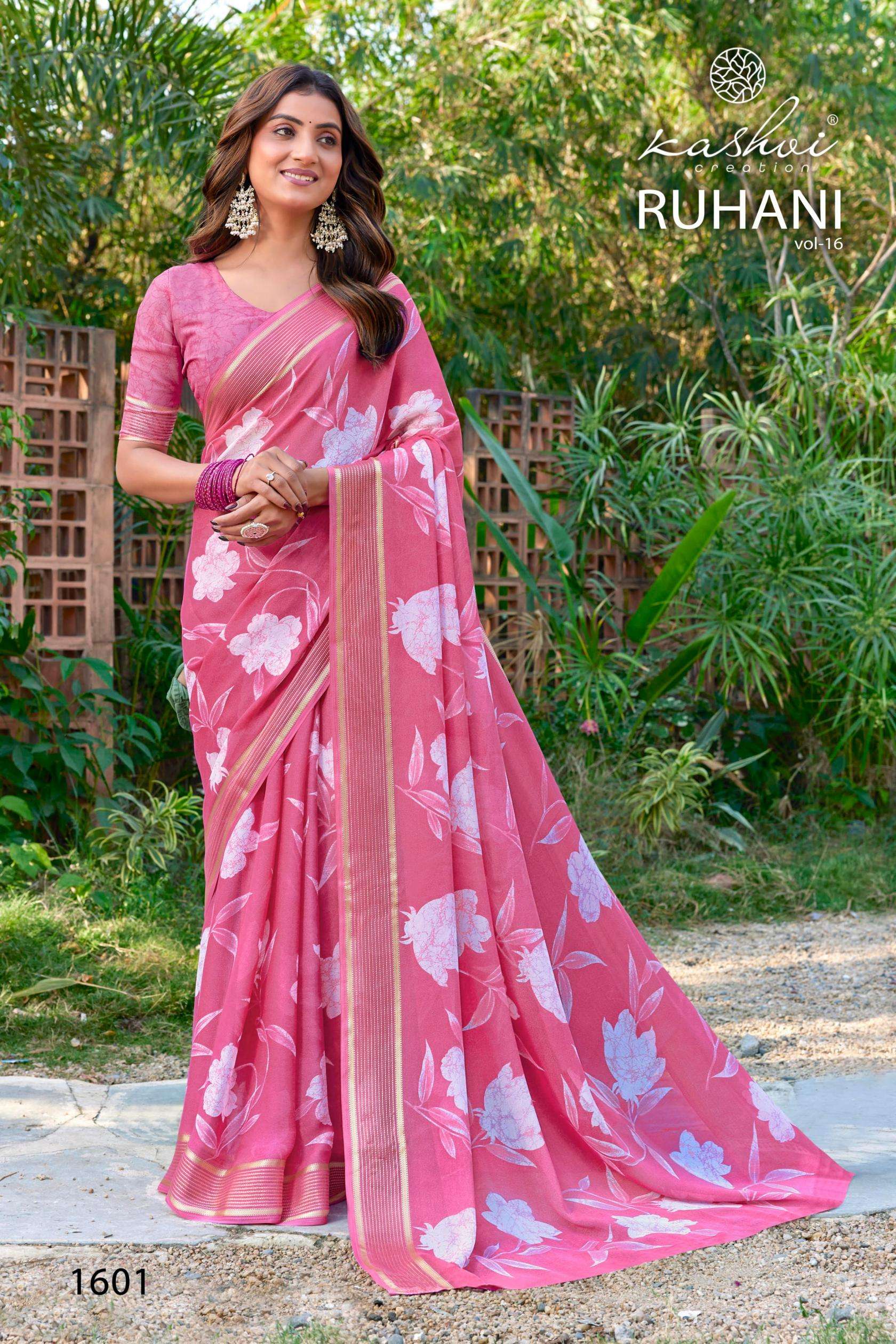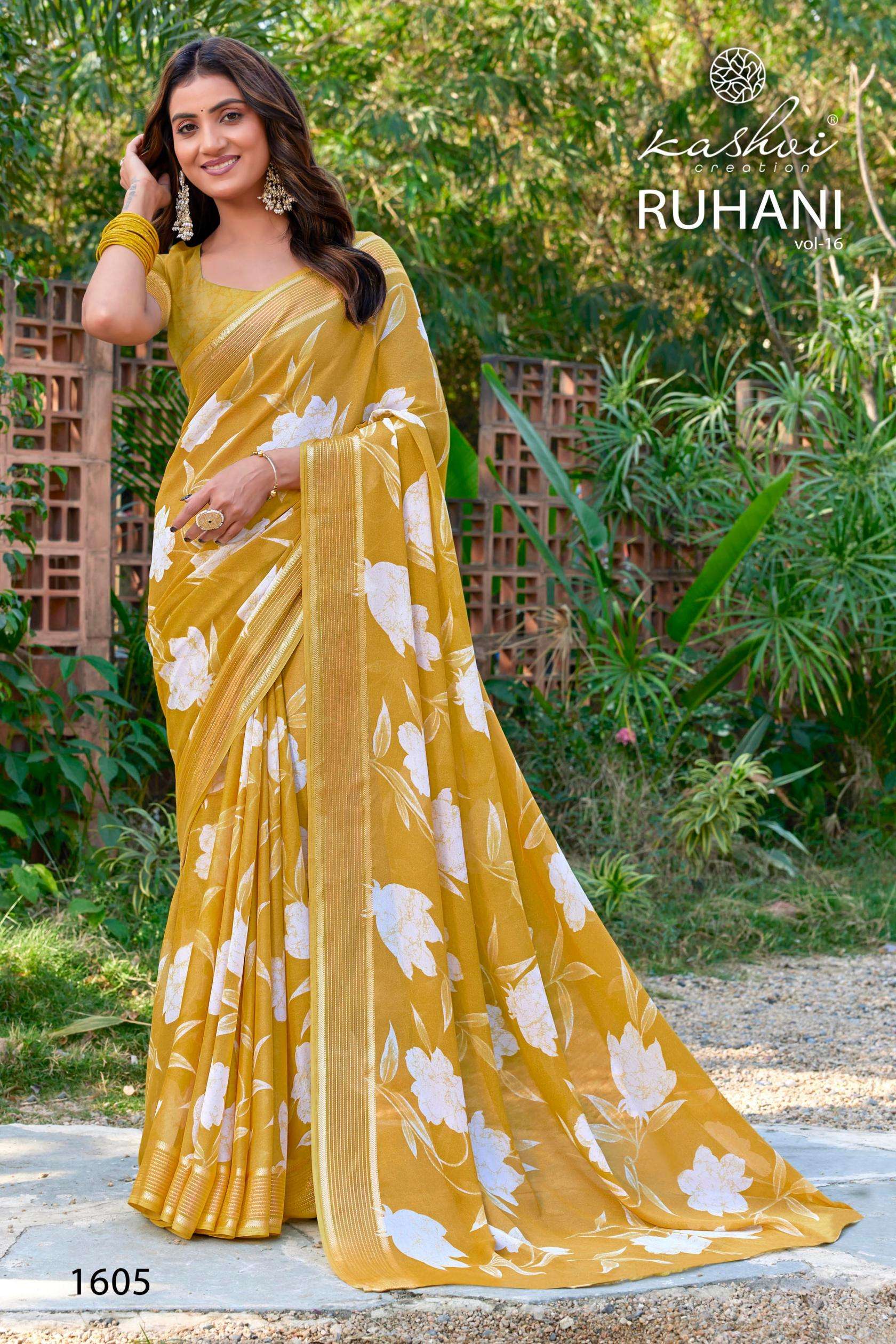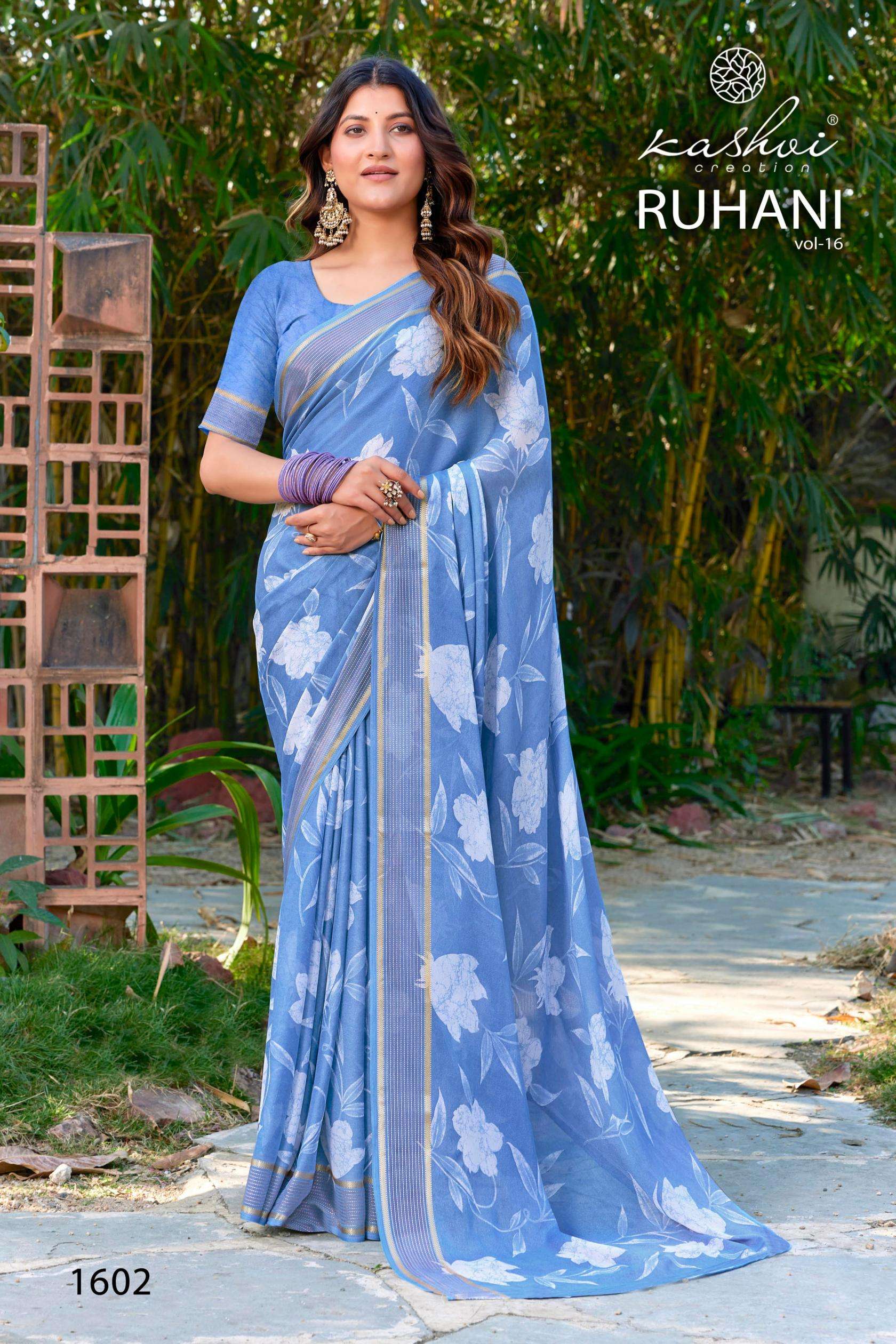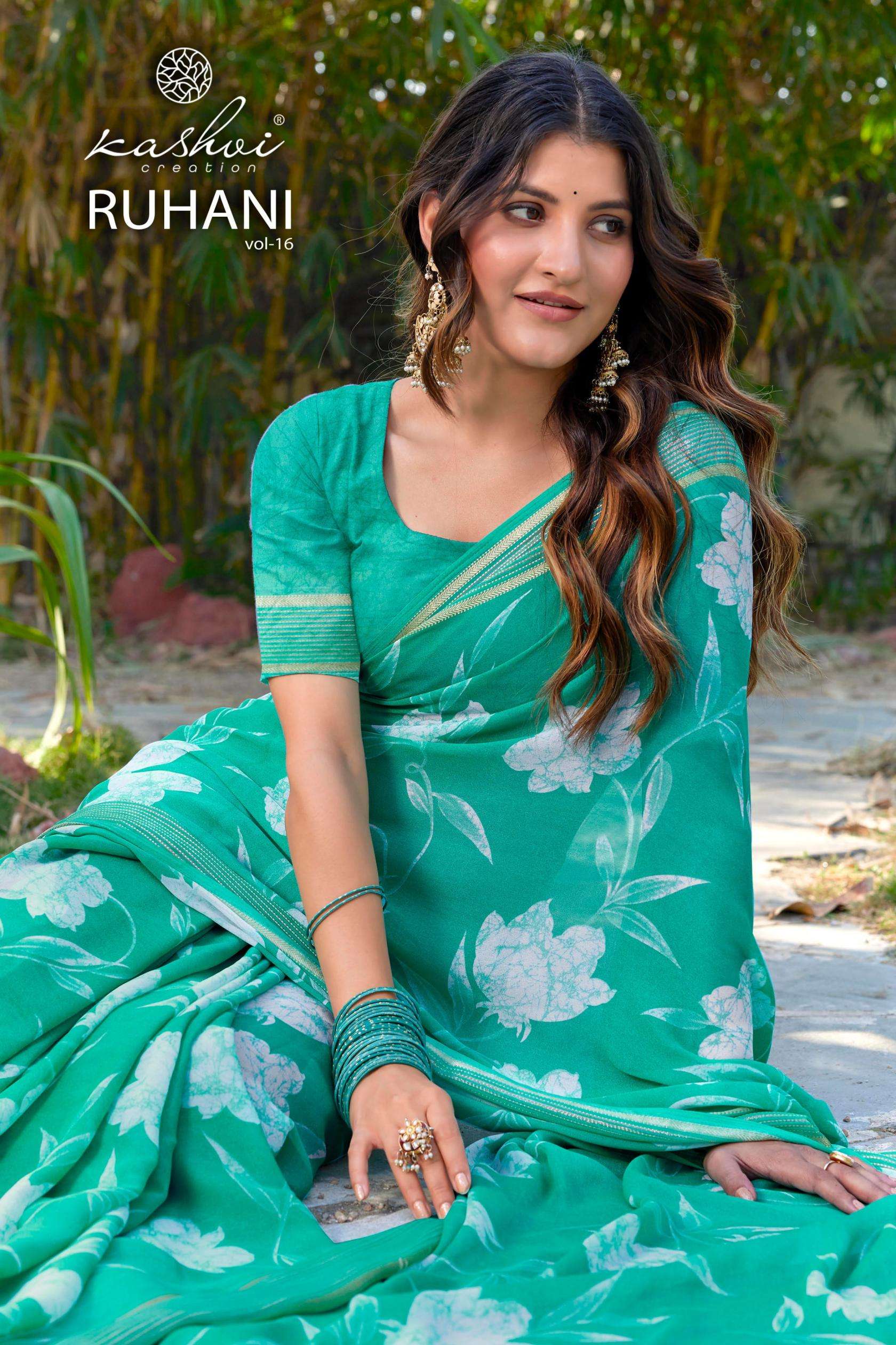 | Name: | Kashvi Ruhani Vol 16 Series 1601-1608 Dull Moss Satin Wholesale Saree |