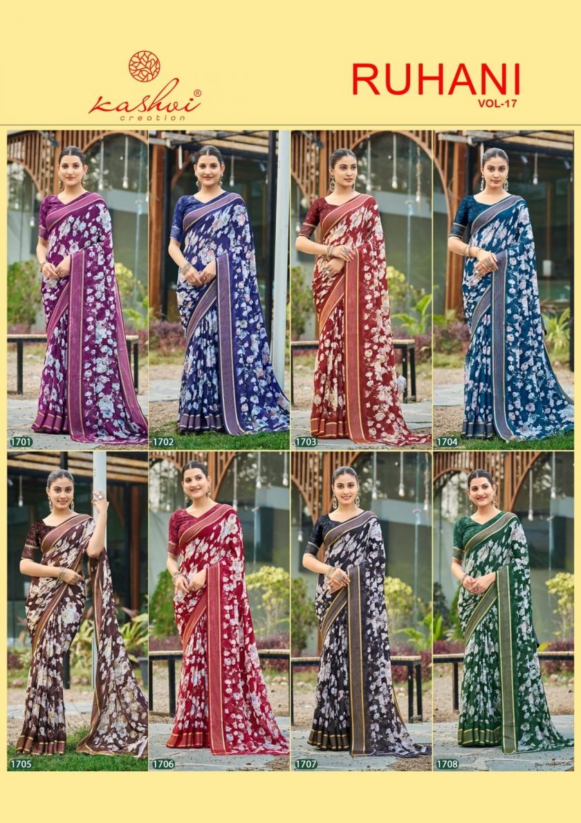 | Name: | Kashvi Ruhani Vol 17 Series 1701-1708 Dull Moss Wholesale Saree |