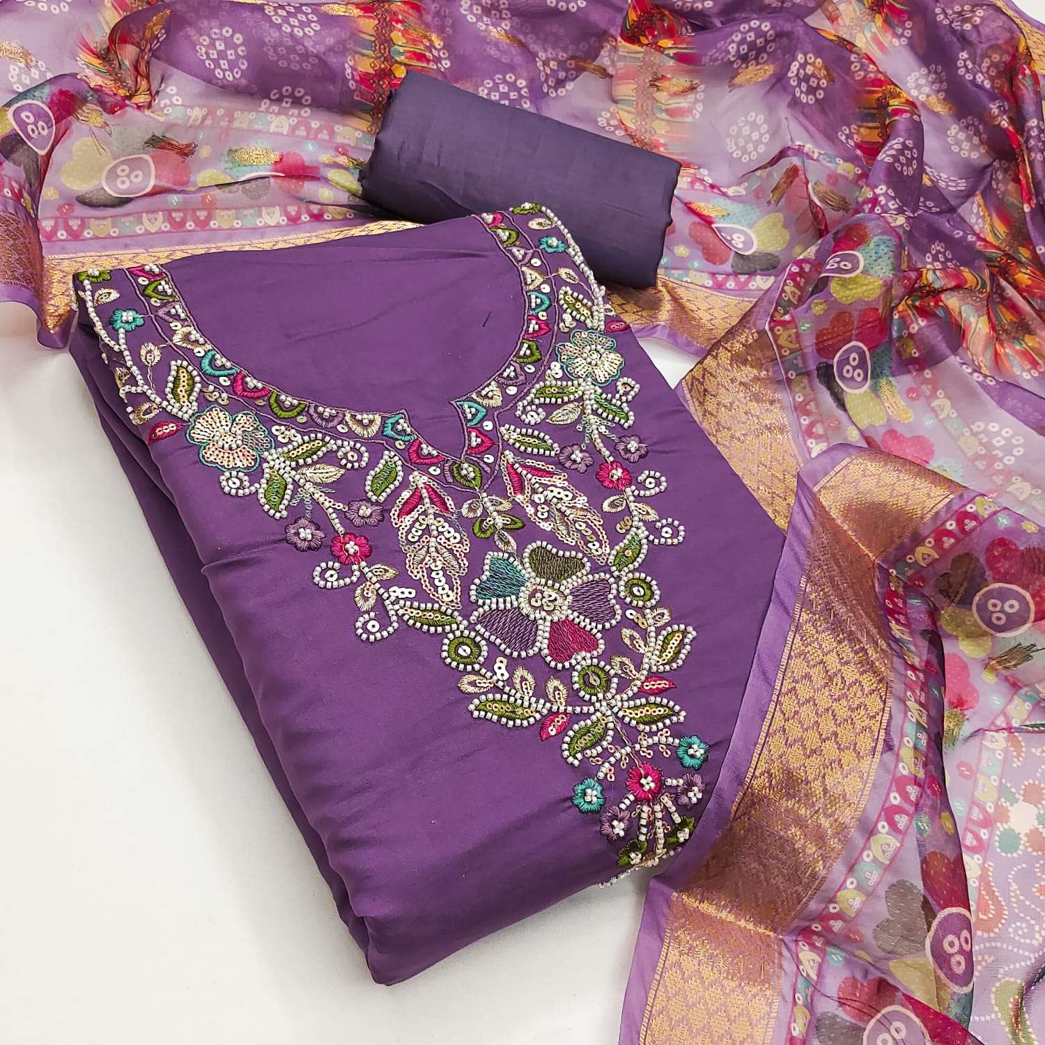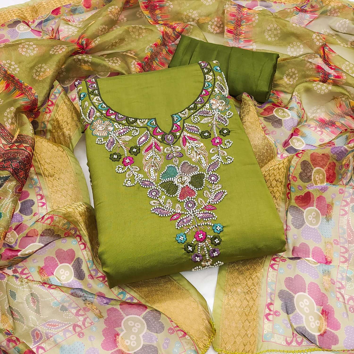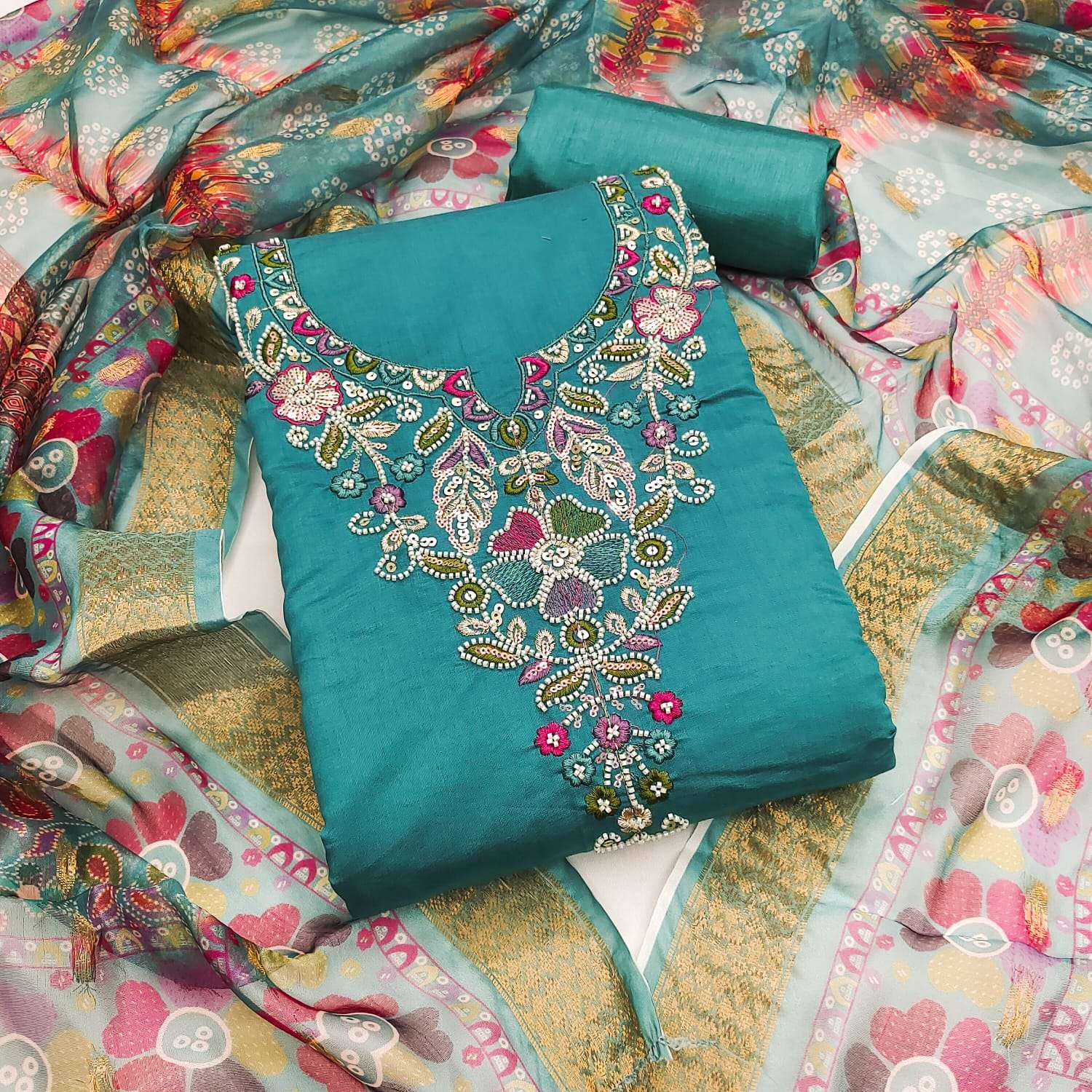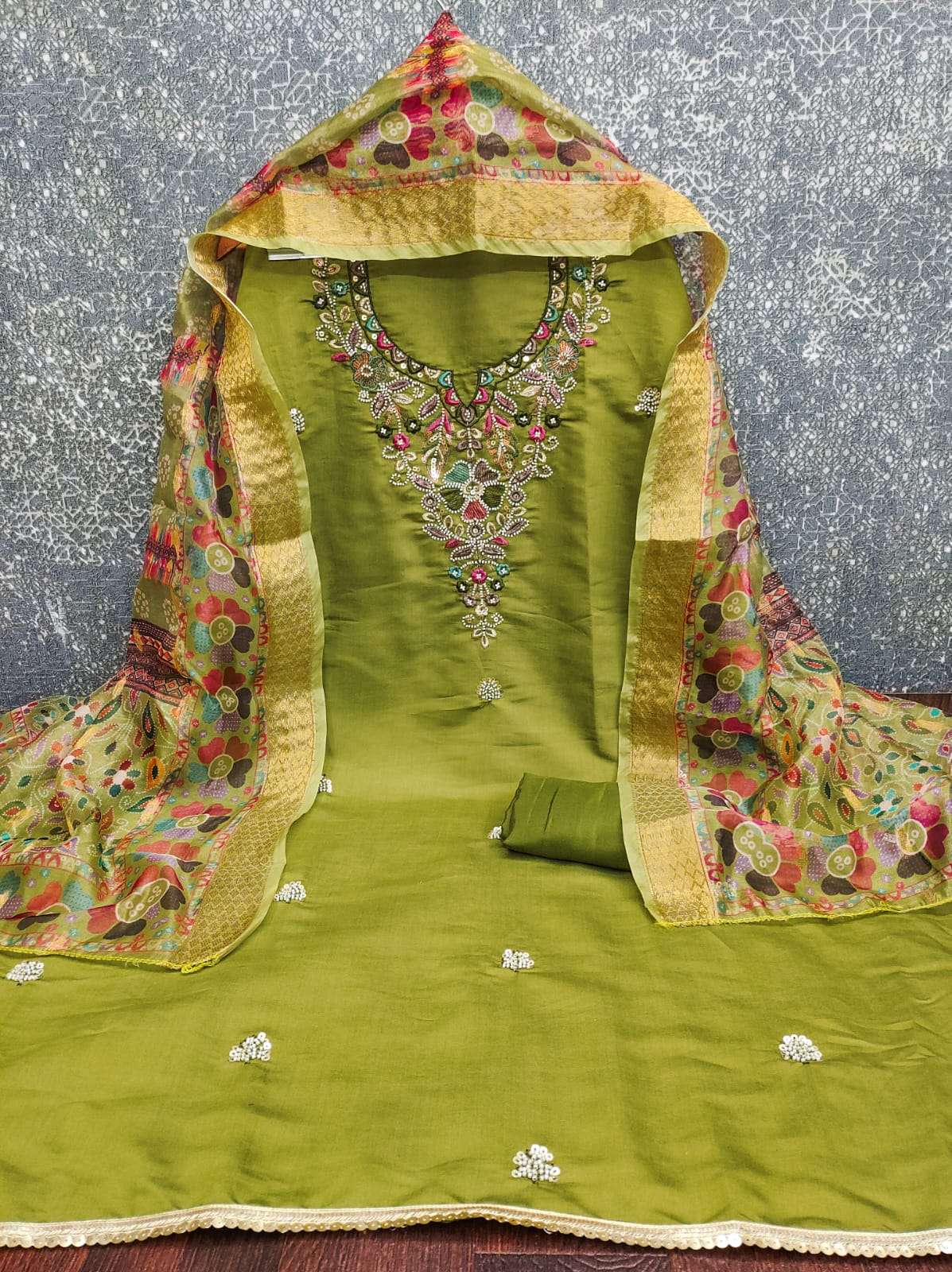 BOTTOM Fabrics:- Dupatta: ORGANZA SILK ZAKARD DIGITAL PRINT ▪ Size: MATERIALS