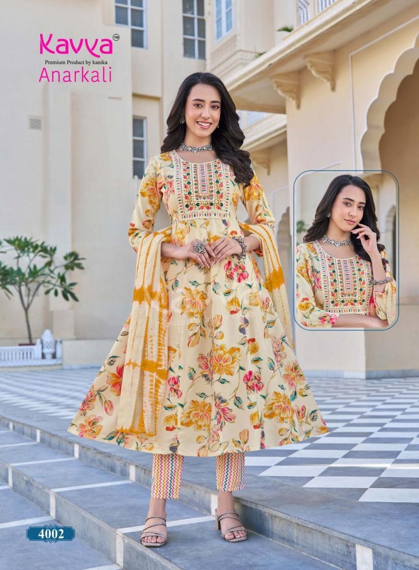 | Name: | Kavya Anarkali Vol 4 Series 4001 To 4010 Rayon Readymade Stylish Suit In Wholesale Surat |
