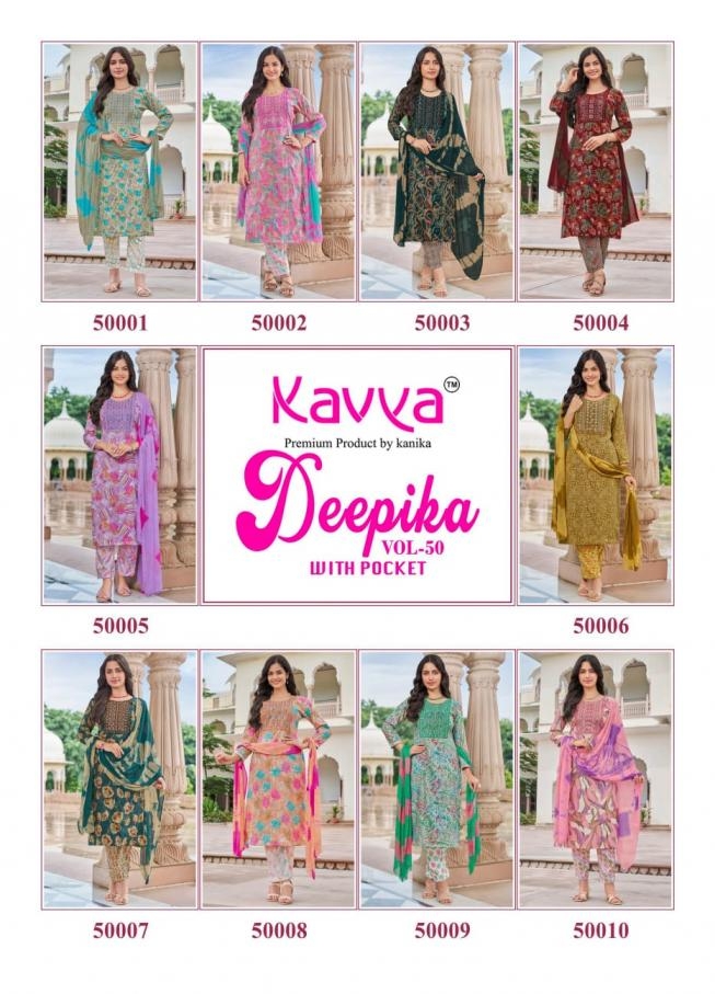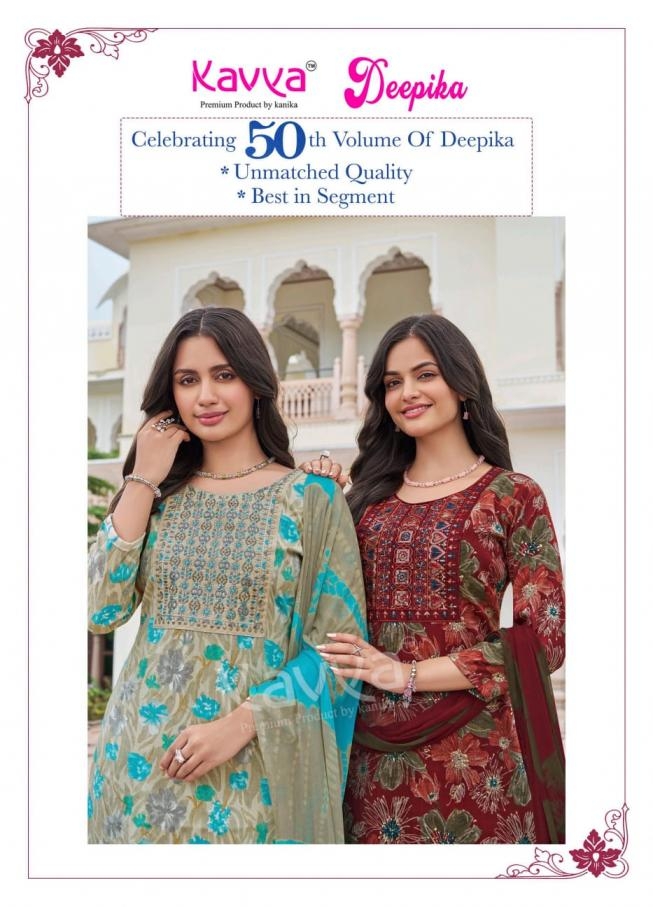 | Name: | Kavya Deepika Vol 50 Series 5001 To 5010 Unique Capsule Print Readymade Suit In Wholesale Surat |