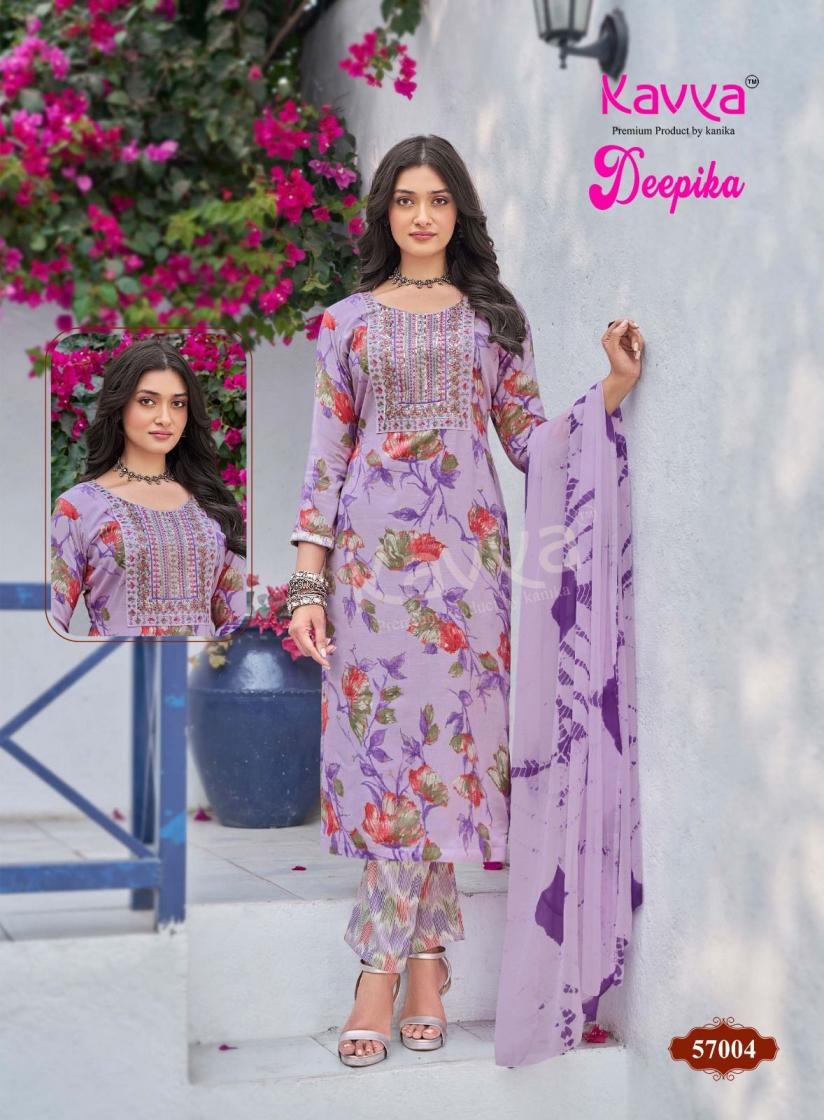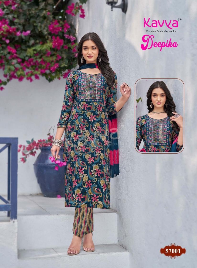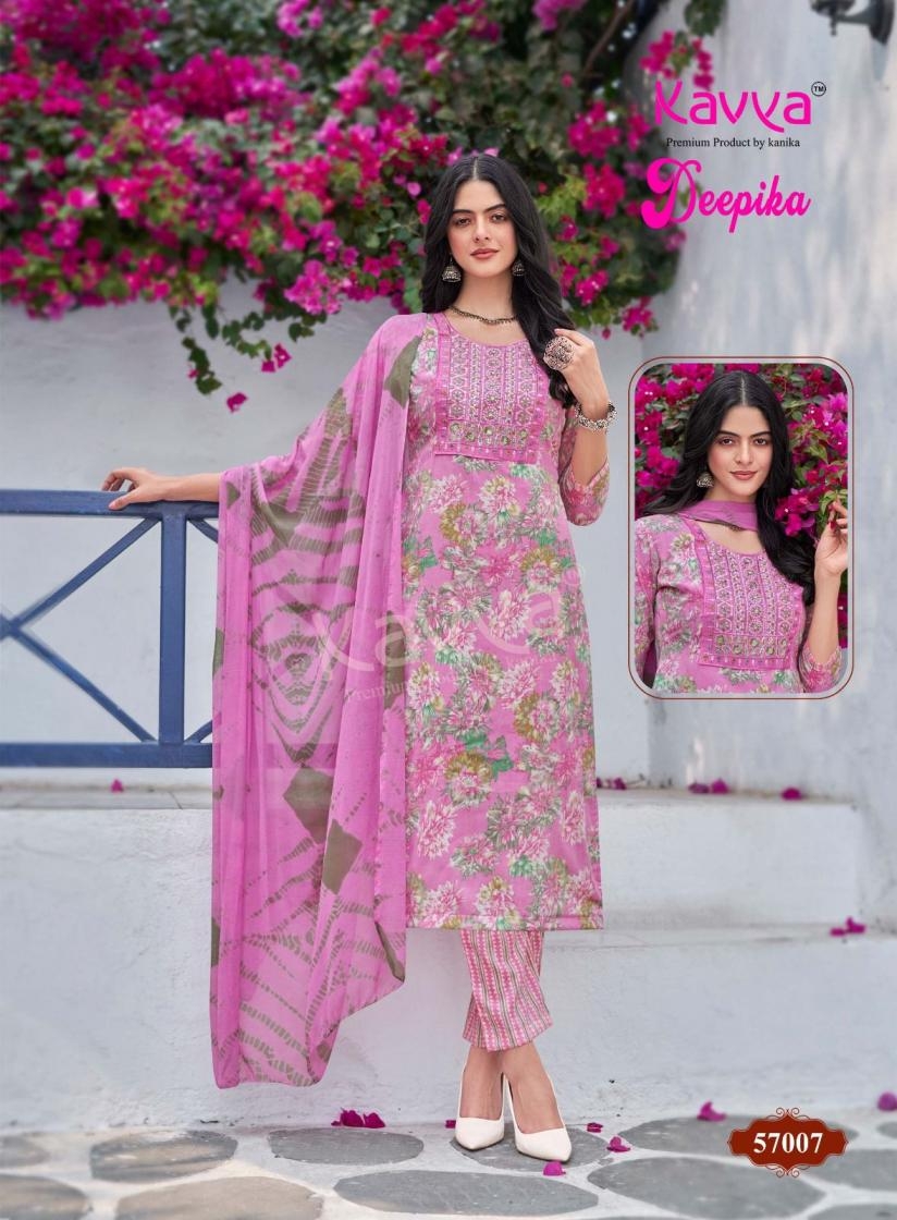 | Name: | Kavya Deepika Vol 57 Series 57001-57010 Capsule Wholesale Readymade Suit |