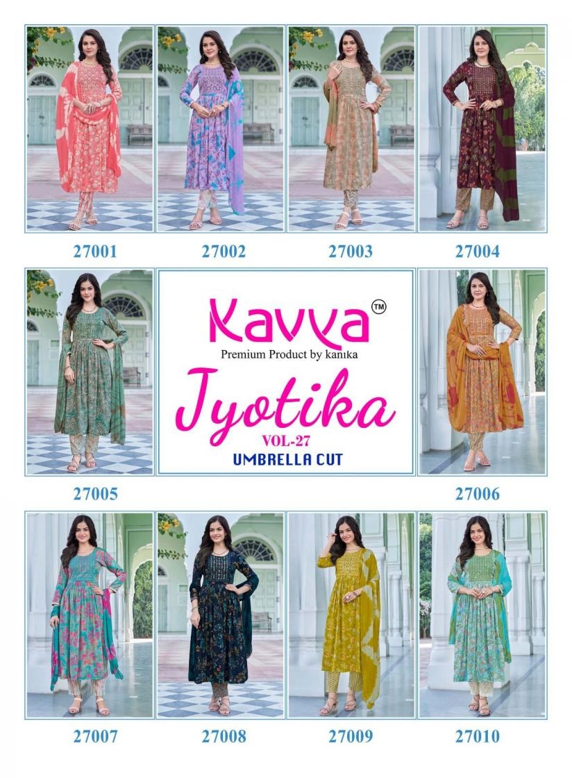 | Name: | Kavya Jyotika Vol 27 Series 27001 To 27010 Capsule Umbrella Cut Readymade Suit In Wholesale Surat |