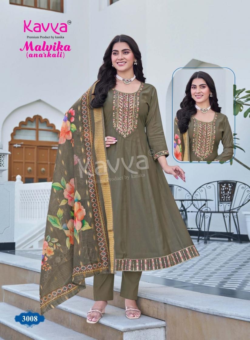 | Other Details: | 🚨 Launching ✨KAVYA MALVIKA✨ Vol 3🧶 Fabric : Heavy reed pick Roman silk top bottom and chanderi dobby butta STYLE : ANARKALI👗 👚 Top: Premium quality stitched Anarkali top with 45+ height and 45+ ghera With lining and Embroidery on neck cuff and daman🪡 👖 Bottom: Premium quality Stitched Pant. 🧣 Dupatta: Digital Printed Fancy Chanderi Dupatta. 🏆 Best in Segment – Unmatched Quality & Pricing🔥 📏 Sizes Available: M, L, XL, XXL, 3XL Rate : 770/- +GST |