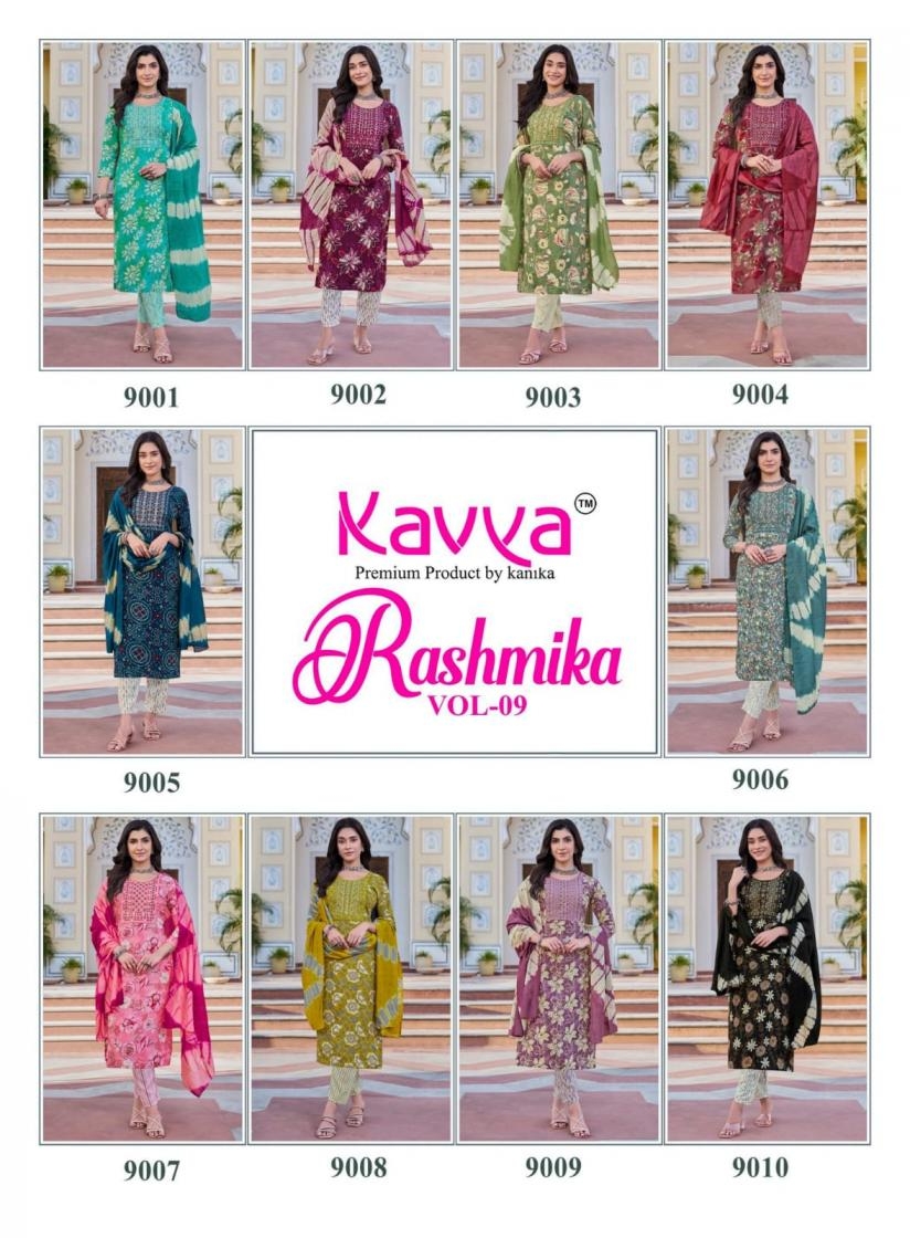 Name: | Kavya Rashmika Vol 9 Series 9001 To 9010 Rayon Readymade Elegance Suit In Wholesale Surat |