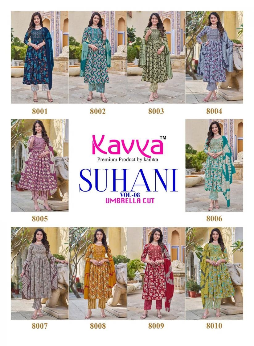 | Name: | Kavya Suhani Vol 8 Series 8001-8010 Viscose Wholesale Readymade Suit |