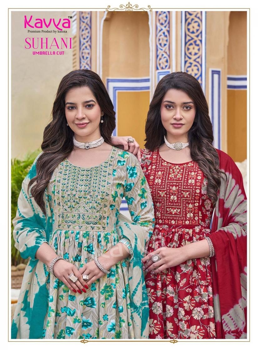 | Other Details: | 🌸 Launching KAVYA SUHANI VOL 8🌸 🧵 STYLE : Umbrella Cut ✨ 🌟 FABRIC : ✨ Top – Viscose feel Foil Print with embroidery on neck and height 45”+ 🌼 👖 Bottom – Viscose feel Printed fabric (Comfort Fit, Premium Quality Stitched Pants) 👍 🧣 Dupatta – Chanderi Cotton 🌸 📏 Sizes : M to 3XL Rate : 475/- +Gst ⚡ Best in segment ! |