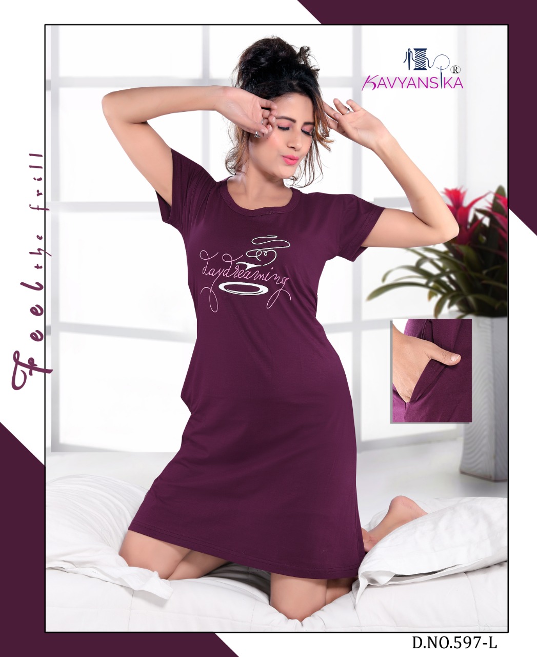 | Name: | Kavyansika Nighty Vol 597 Premium Long Tshirt Cum Short Nighty With Pocket Concept |