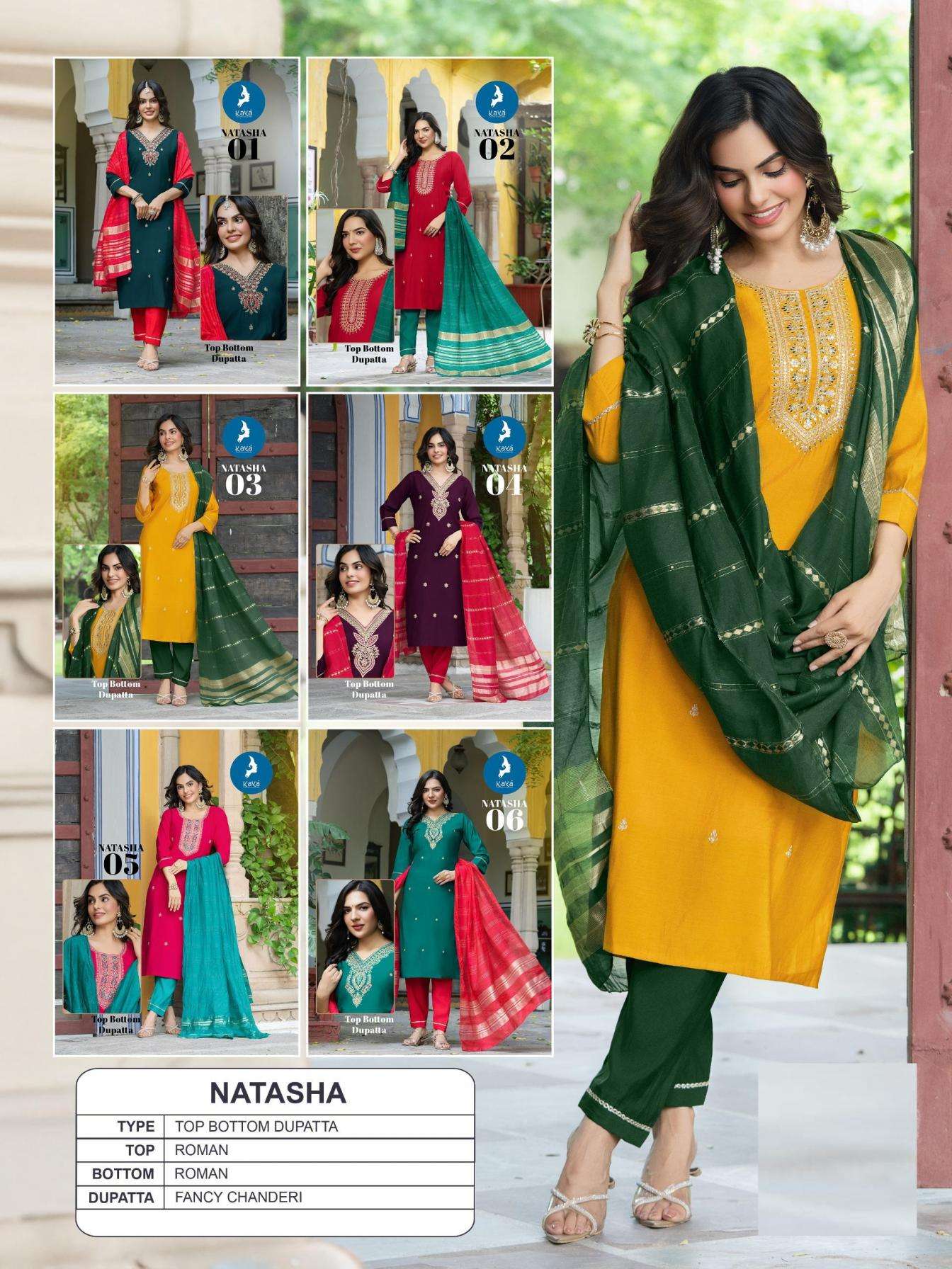 Name: | Kaya Natasha Series 01 To 06 Roman Silk Readymade Stylish Suit In Wholesale Surat |