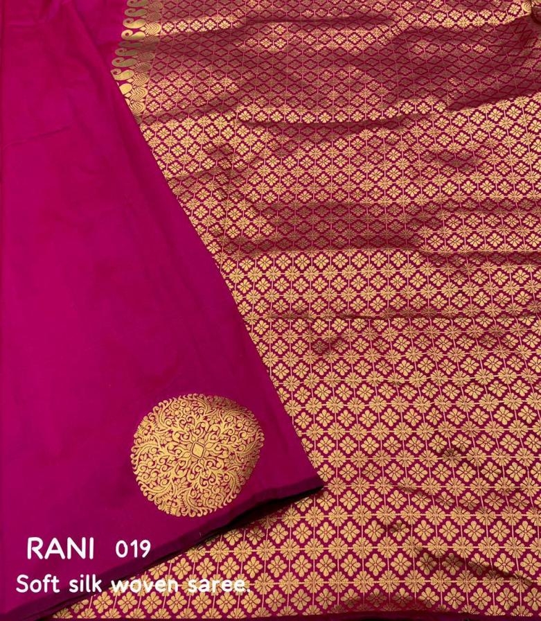 | Other Details: | TOP TRENDING New soft silk catalog from kc kc- 019 kc- purnima silk. Quality- soft silk saree with zari woven butta on both side. Rich zari woven pallu with cotton tassles. Blouse- running saree color soft silk blouse with woven zari selvees on it. Rate- 899+ship Top trusted quality from kc. |