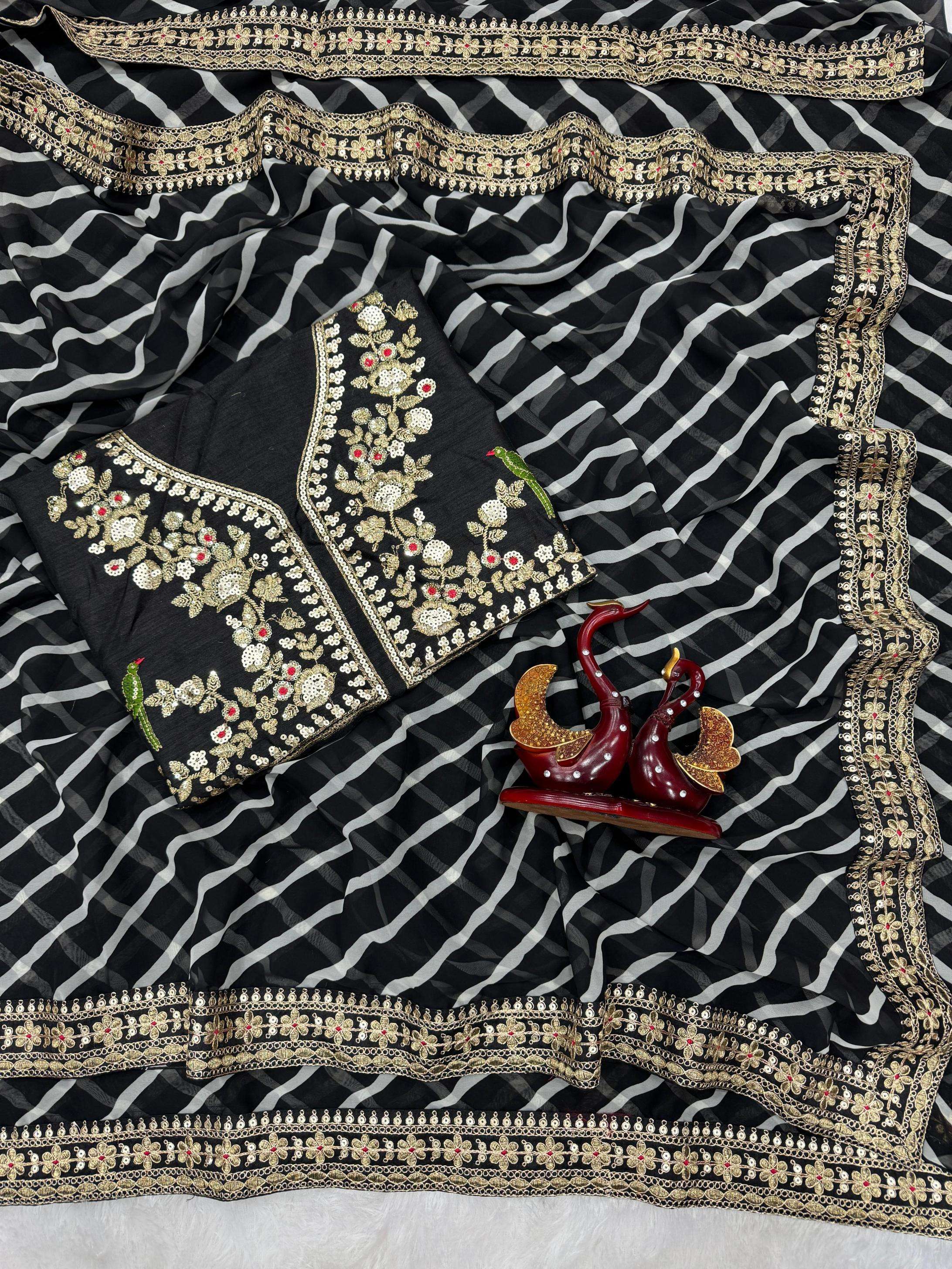 | Name: | Kc 2088 Georgette Embroided Work Leriya Print Sarees |