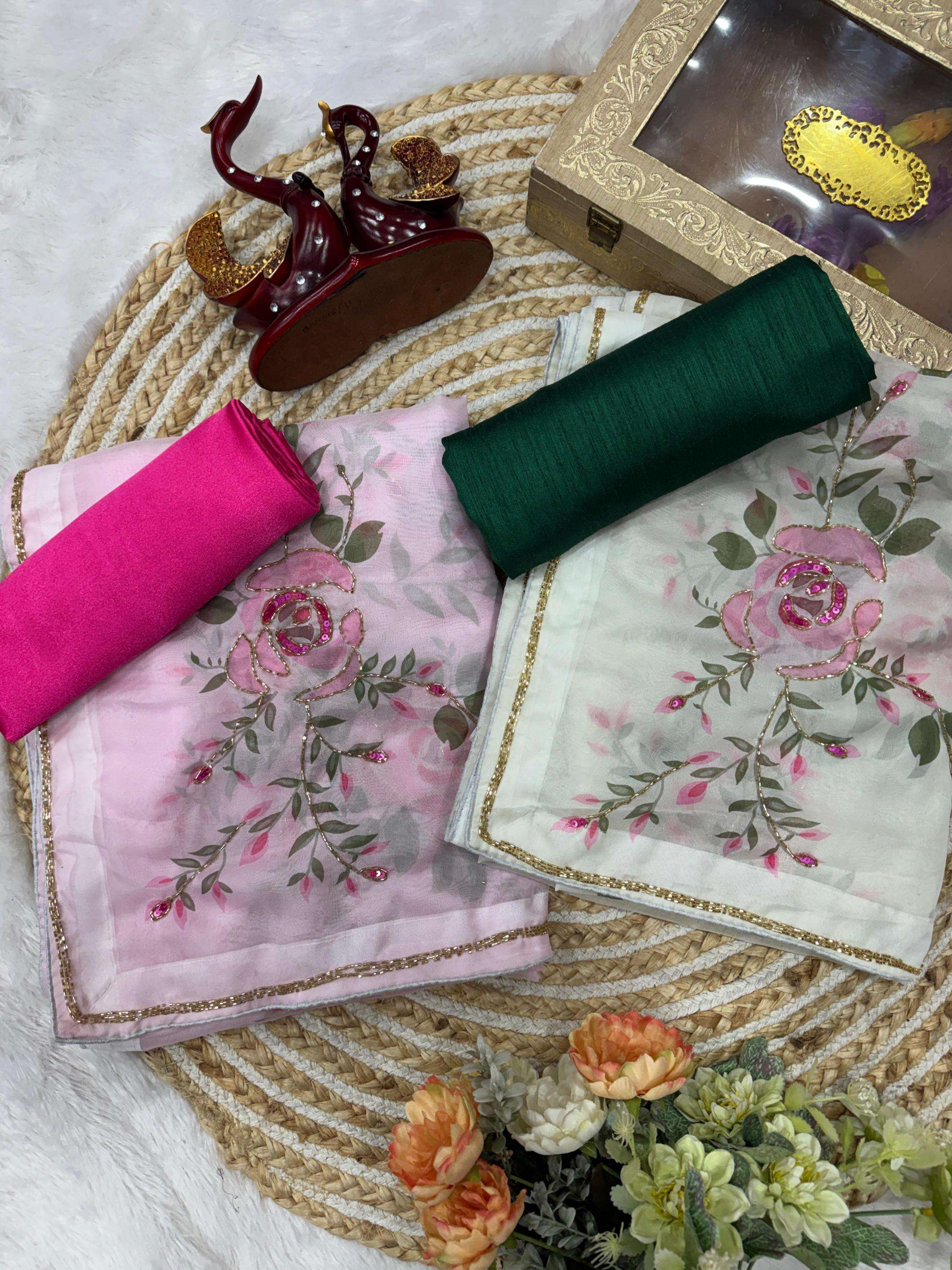 | Other Details: | Present a new trending floral handwork saree collection *👇 PRODUCT DETAILS 👇* *KC 2115* *⭕SAREE FAB. :* Soft Tebby Silk *Exuding grace and sophistication, this floral-printed organza saree blends classic beauty with modern elegance. Each delicate petal in the design tells a story of timeless charm, making it the perfect choice for those who appreciate both tradition and contemporary style.* 🤷♂️ JUST @ RS.1449/- 👍we will keep adding trending designs to your wardrobe *💃BOOK YOUR ORDER FAST💃* |