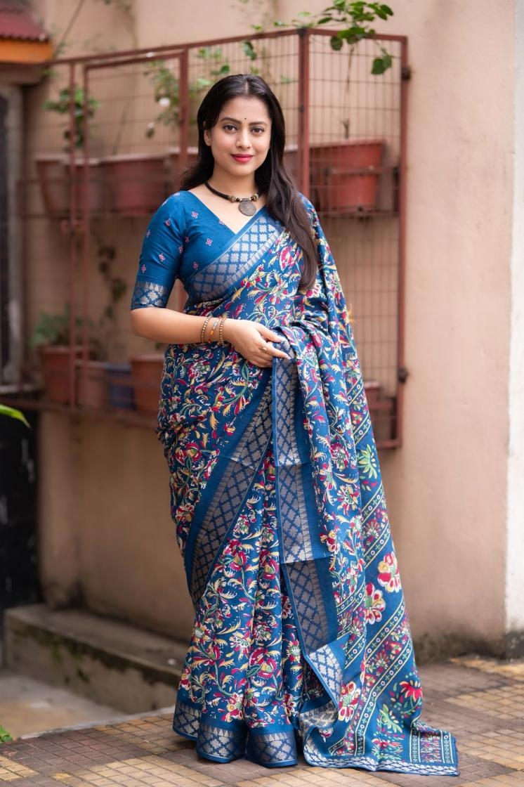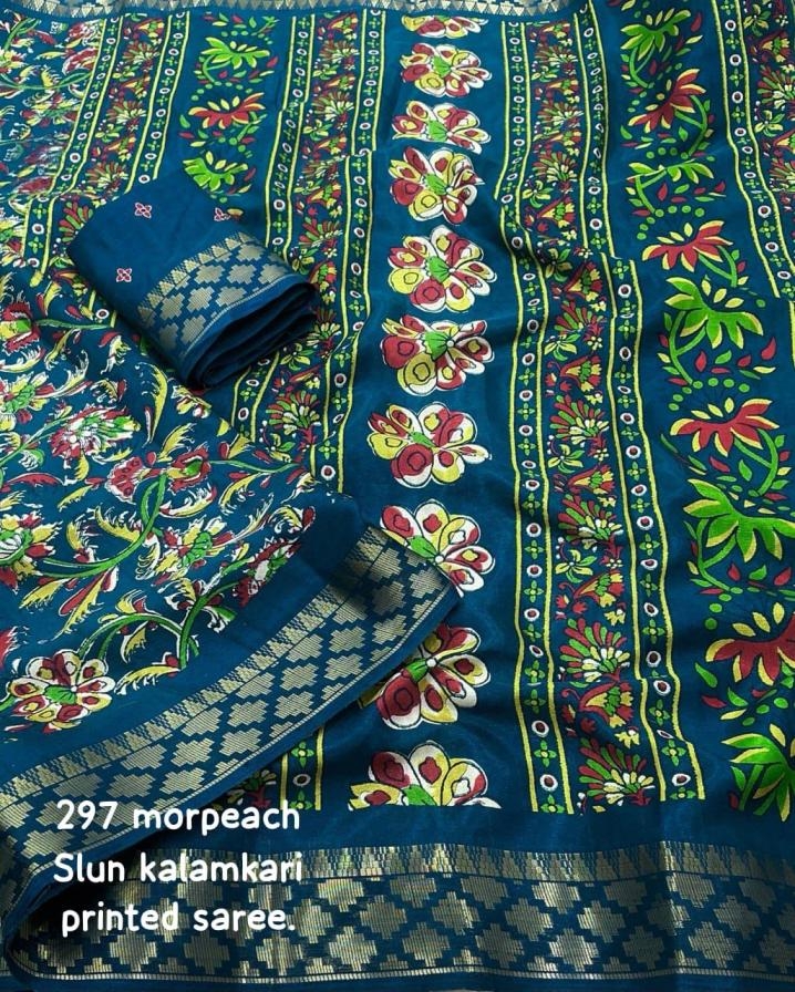 | Name: | Kc 295 Silk Kalamkari Zari Woven Border Sarees |