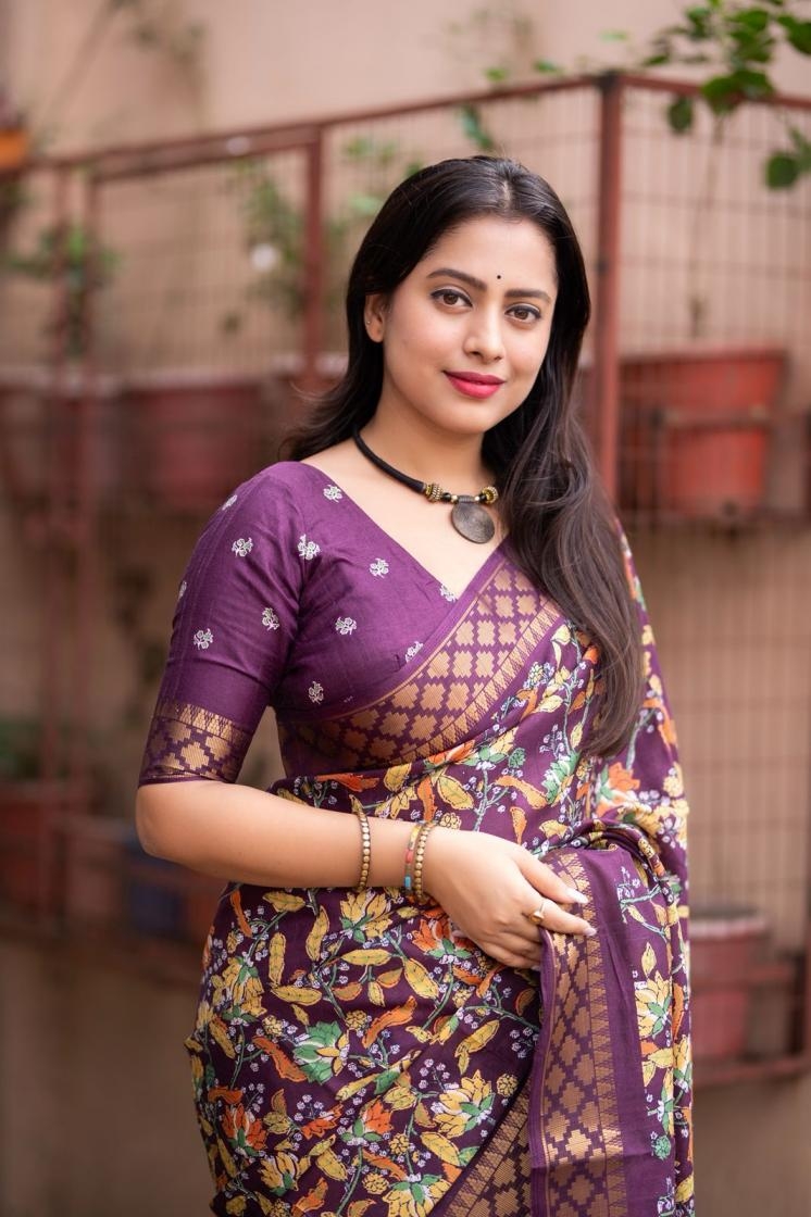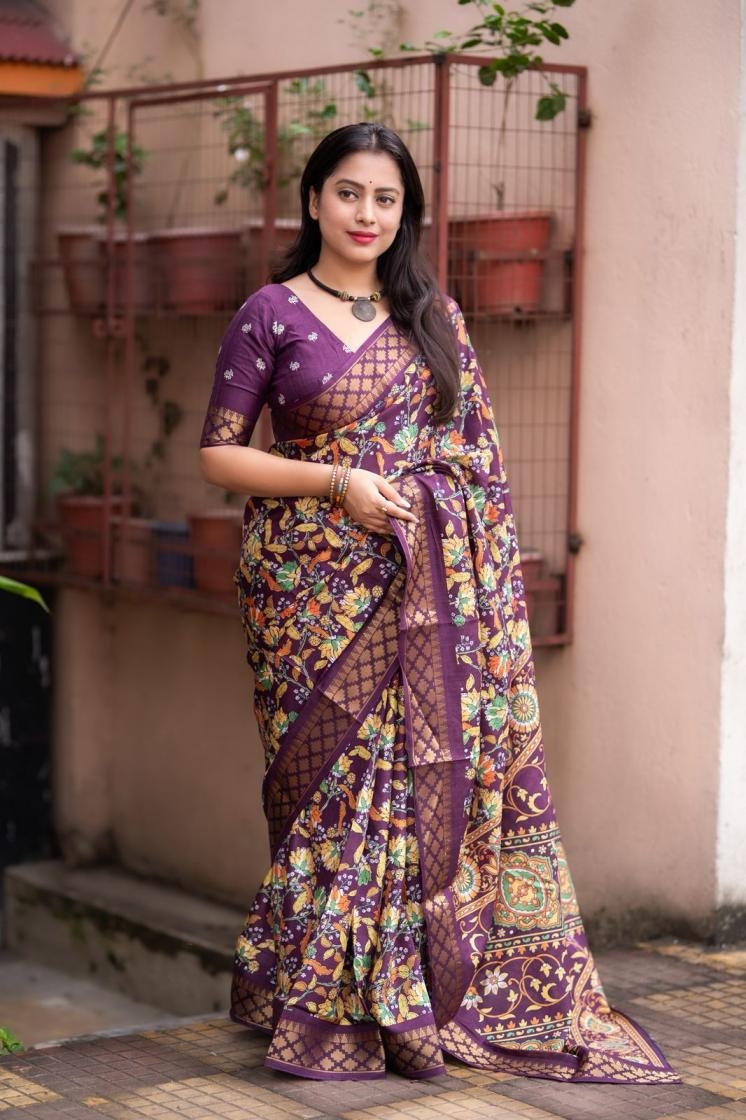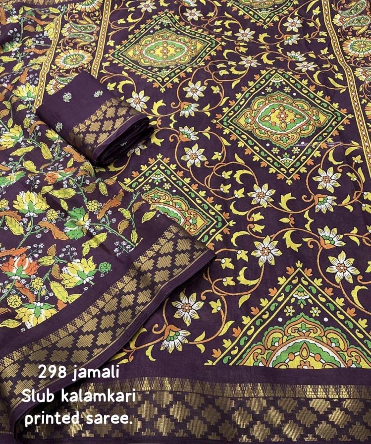 | Other Details: | new arrivals New lilac sover printed saree. Single color edition. KC - 295 HANDLOOM KALAMKARI. quality- soft silk kalamkari style slub woven saree with zari woven border. Blouse- running slub silk printed blouse. Rate - 570+ship Top trusted quality |